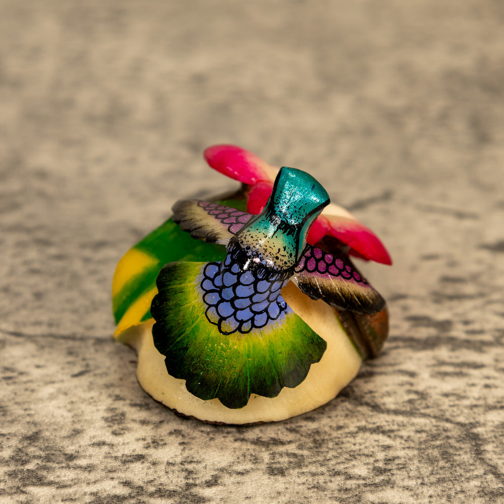Delve into the world of sustainable art with our exquisite hand-carved Hummingbird tagua nut sculptures. Known as "vegetable ivory," tagua nuts offer a cruelty-free alternative to ivory, making each piece not only beautiful but also eco-friendly. Our skilled artisans dedicate hours to carefully shaping, detailing, and polishing the tagua to highlight its natural luster and intricate textures.