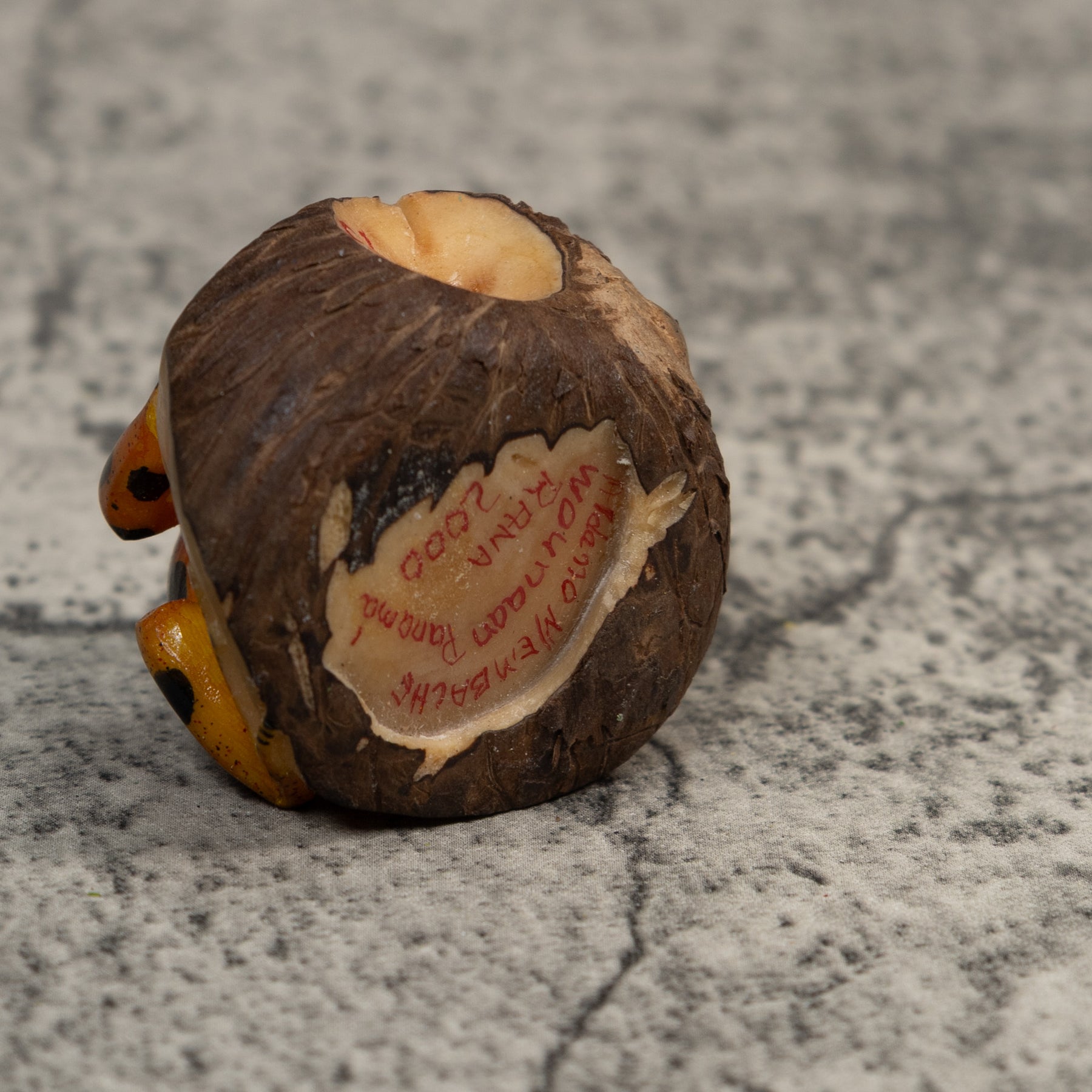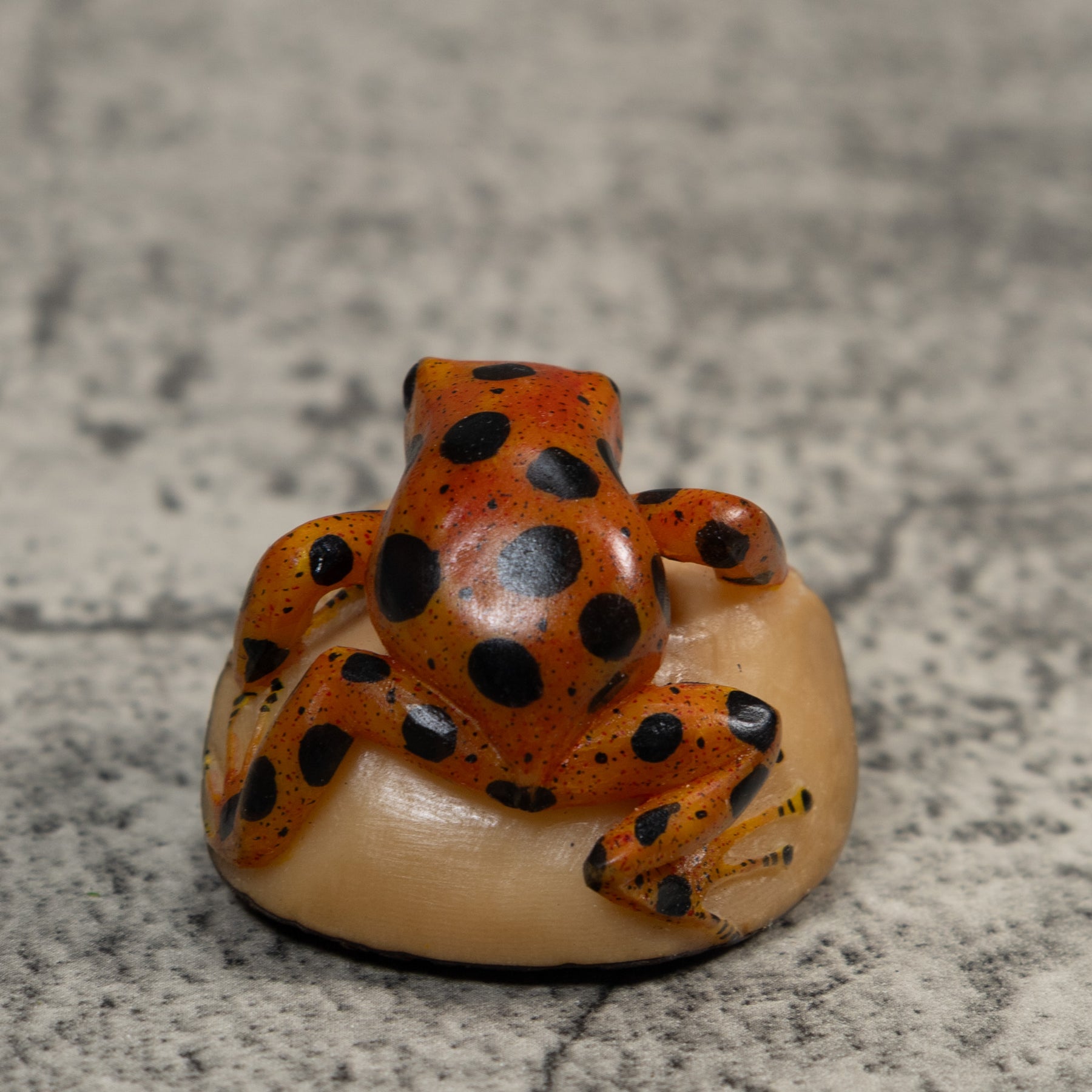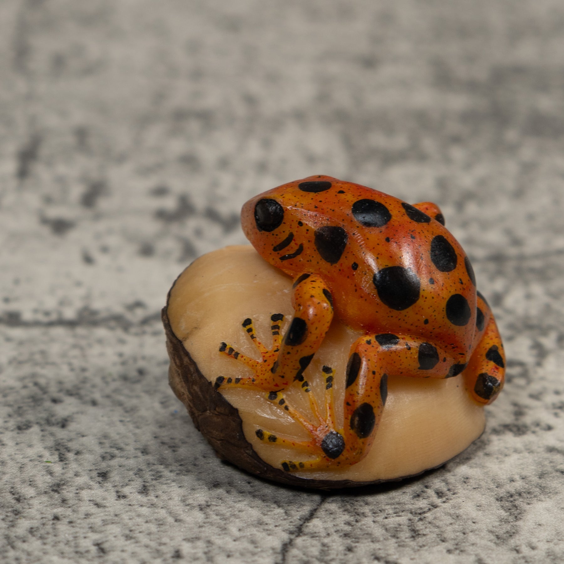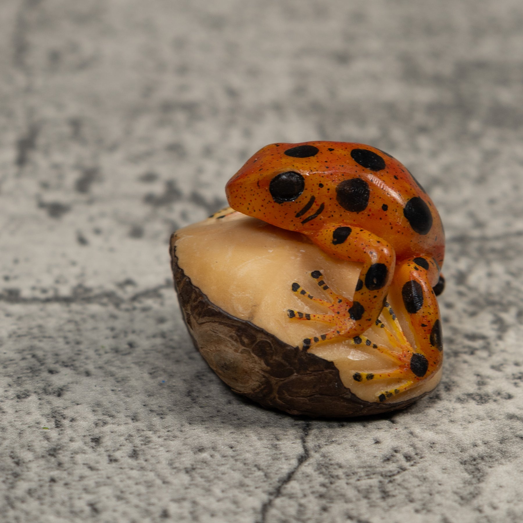 Hand carved from sustainably harvested tagua nut, often called “vegetable ivory”, this charming Frog celebrates the rich biodiversity of the Latin American rainforest. Each small sculpture is created by skilled artisans in Panama who carefully shape and polish the natural nut before bringing the animal to life with detailed hand painting. Every piece is made by our artisan partners for TraderBrock, helping support traditional craft and fair, long term relationships with local makers.
