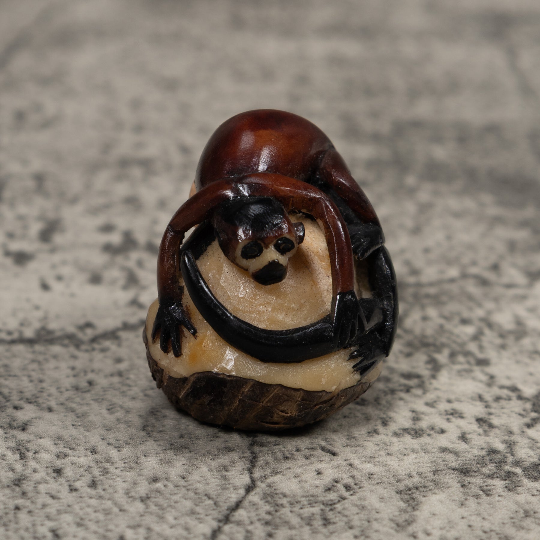 Hand carved from sustainably harvested tagua nut, often called “vegetable ivory”, this charming Monkey celebrates the rich biodiversity of the Latin American rainforest. Each small sculpture is created by skilled artisans in Panama who carefully shape and polish the natural nut before bringing the animal to life with detailed hand painting. Every piece is made by our artisan partners for TraderBrock, helping support traditional craft and fair, long term relationships with local makers.