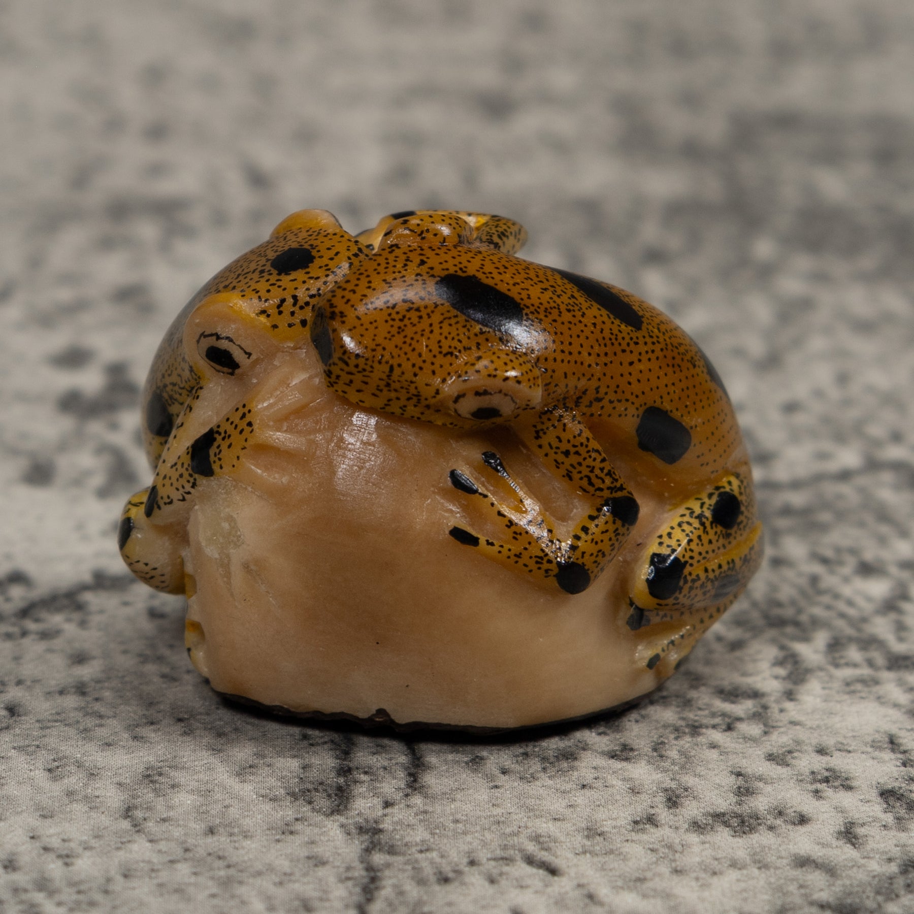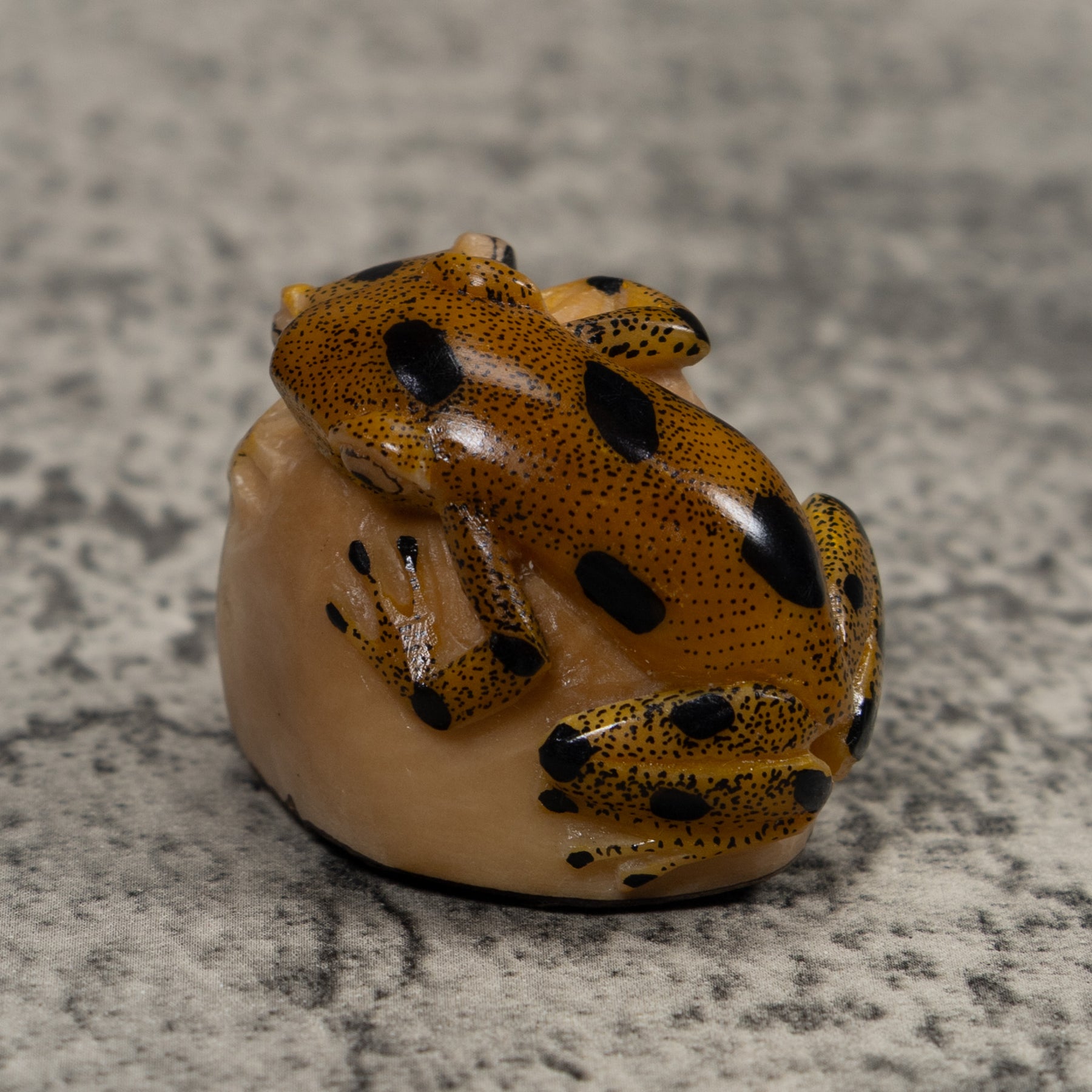 Hand carved from sustainably harvested tagua nut, often called “vegetable ivory”, this charming Frog celebrates the rich biodiversity of the Latin American rainforest. Each small sculpture is created by skilled artisans in Panama who carefully shape and polish the natural nut before bringing the animal to life with detailed hand painting. Every piece is made by our artisan partners for TraderBrock, helping support traditional craft and fair, long term relationships with local makers.