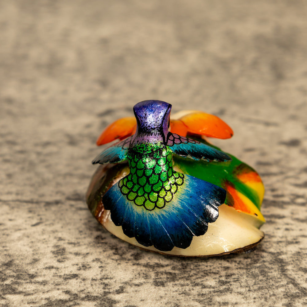 Delve into the world of sustainable art with our exquisite hand-carved Hummingbird tagua nut sculptures. Known as "vegetable ivory," tagua nuts offer a cruelty-free alternative to ivory, making each piece not only beautiful but also eco-friendly. Our skilled artisans dedicate hours to carefully shaping, detailing, and polishing the tagua to highlight its natural luster and intricate textures.