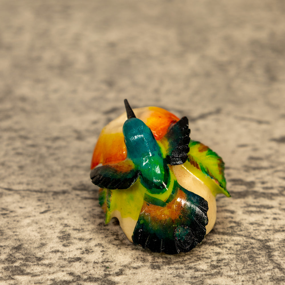 Delve into the world of sustainable art with our exquisite hand-carved Hummingbird tagua nut sculptures. Known as "vegetable ivory," tagua nuts offer a cruelty-free alternative to ivory, making each piece not only beautiful but also eco-friendly. Our skilled artisans dedicate hours to carefully shaping, detailing, and polishing the tagua to highlight its natural luster and intricate textures.