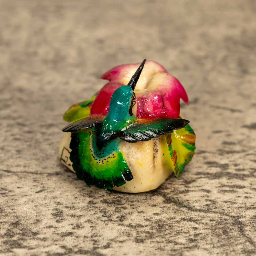 Delve into the world of sustainable art with our exquisite hand-carved Hummingbird tagua nut sculptures. Known as "vegetable ivory," tagua nuts offer a cruelty-free alternative to ivory, making each piece not only beautiful but also eco-friendly. Our skilled artisans dedicate hours to carefully shaping, detailing, and polishing the tagua to highlight its natural luster and intricate textures.