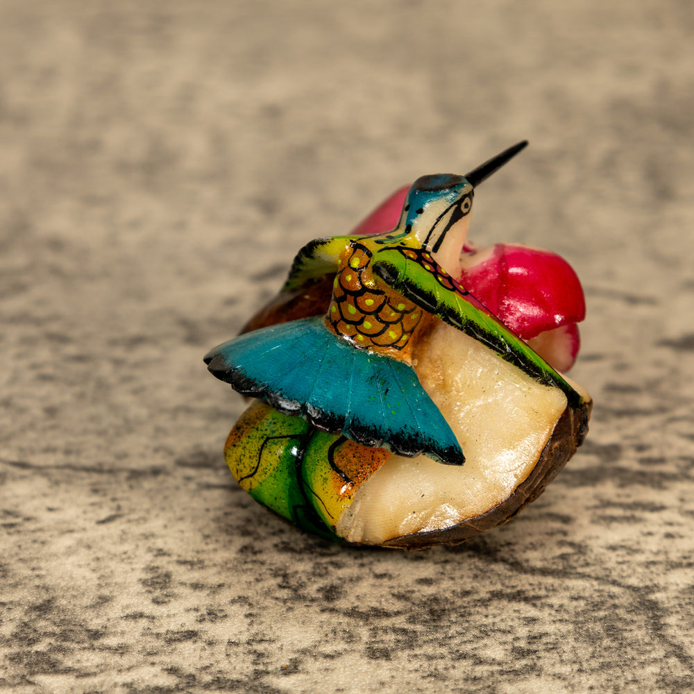 Delve into the world of sustainable art with our exquisite hand-carved Hummingbird tagua nut sculptures. Known as "vegetable ivory," tagua nuts offer a cruelty-free alternative to ivory, making each piece not only beautiful but also eco-friendly. Our skilled artisans dedicate hours to carefully shaping, detailing, and polishing the tagua to highlight its natural luster and intricate textures.
