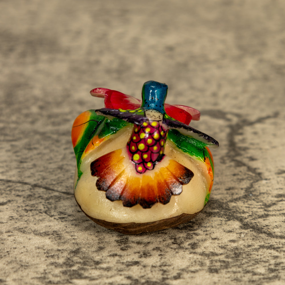 Delve into the world of sustainable art with our exquisite hand-carved Hummingbird tagua nut sculptures. Known as "vegetable ivory," tagua nuts offer a cruelty-free alternative to ivory, making each piece not only beautiful but also eco-friendly. Our skilled artisans dedicate hours to carefully shaping, detailing, and polishing the tagua to highlight its natural luster and intricate textures.