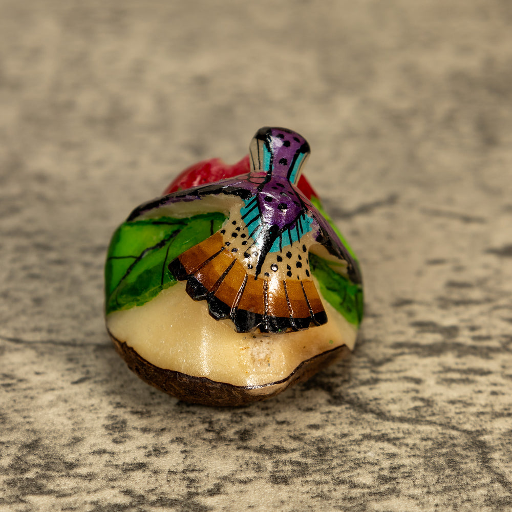 Delve into the world of sustainable art with our exquisite hand-carved Hummingbird tagua nut sculptures. Known as "vegetable ivory," tagua nuts offer a cruelty-free alternative to ivory, making each piece not only beautiful but also eco-friendly. Our skilled artisans dedicate hours to carefully shaping, detailing, and polishing the tagua to highlight its natural luster and intricate textures.