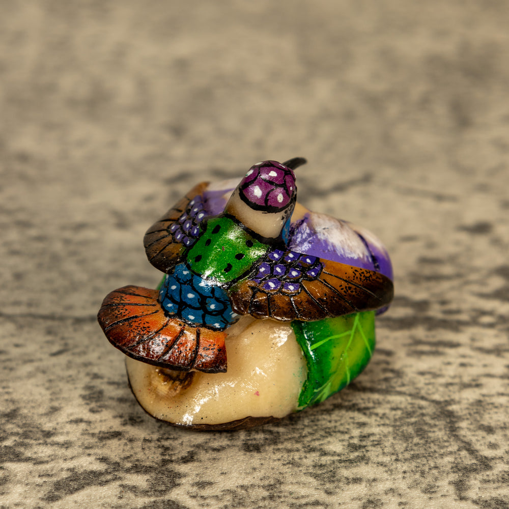 Delve into the world of sustainable art with our exquisite hand-carved Hummingbird tagua nut sculptures. Known as "vegetable ivory," tagua nuts offer a cruelty-free alternative to ivory, making each piece not only beautiful but also eco-friendly. Our skilled artisans dedicate hours to carefully shaping, detailing, and polishing the tagua to highlight its natural luster and intricate textures.