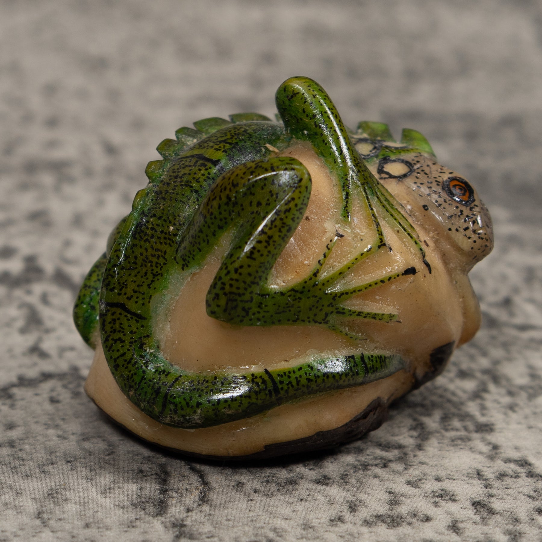Hand carved from sustainably harvested tagua nut, often called “vegetable ivory”, this charming Iguana celebrates the rich biodiversity of the Latin American rainforest. Each small sculpture is created by skilled artisans in Panama who carefully shape and polish the natural nut before bringing the animal to life with detailed hand painting. Every piece is made by our artisan partners for TraderBrock, helping support traditional craft and fair, long term relationships with local makers.