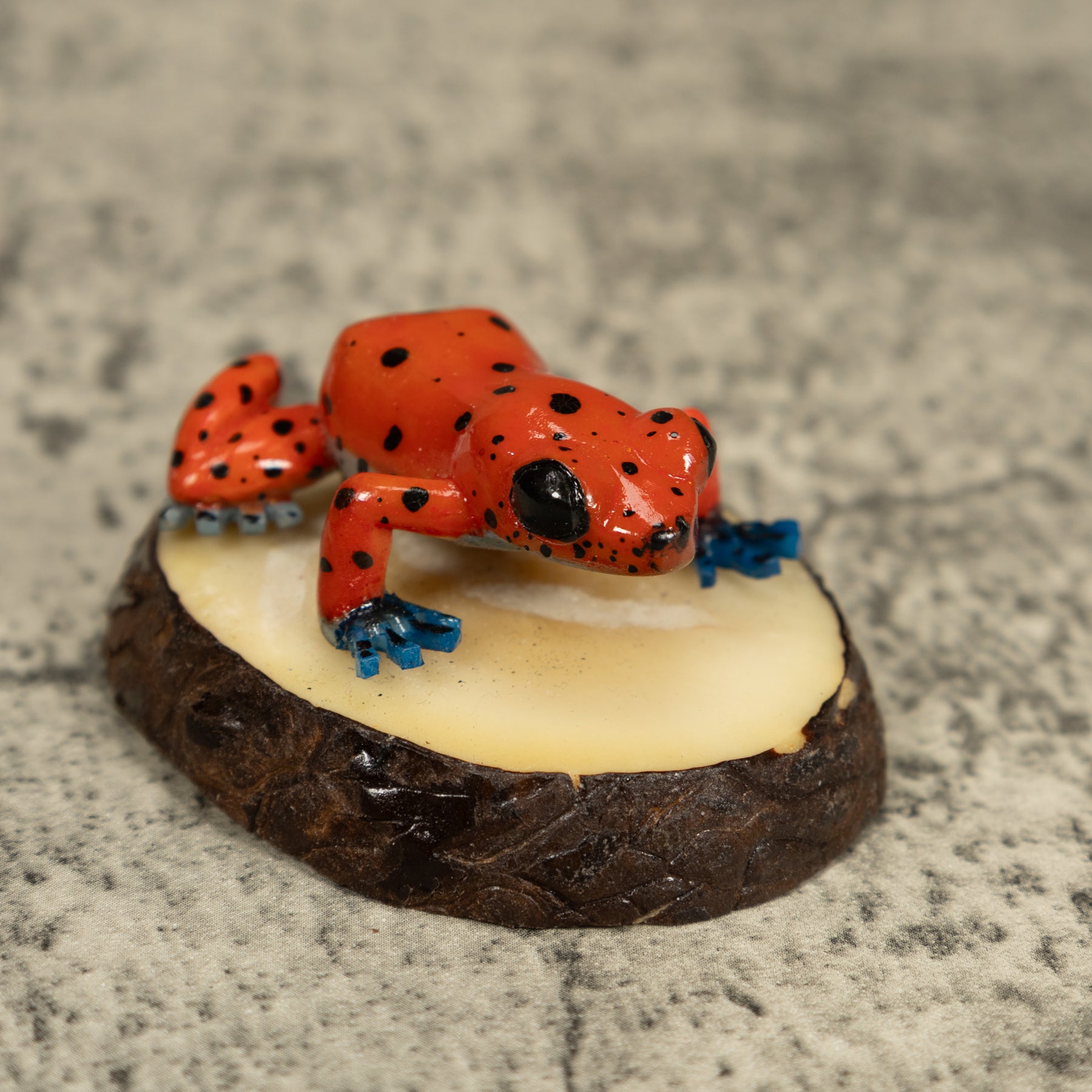 Hand carved from sustainably harvested tagua nut, often called “vegetable ivory”, this charming Frog celebrates the rich biodiversity of the Latin American rainforest. Each small sculpture is created by skilled artisans in Panama who carefully shape and polish the natural nut before bringing the animal to life with detailed hand painting. Every piece is made by our artisan partners for TraderBrock, helping support traditional craft and fair, long term relationships with local makers.