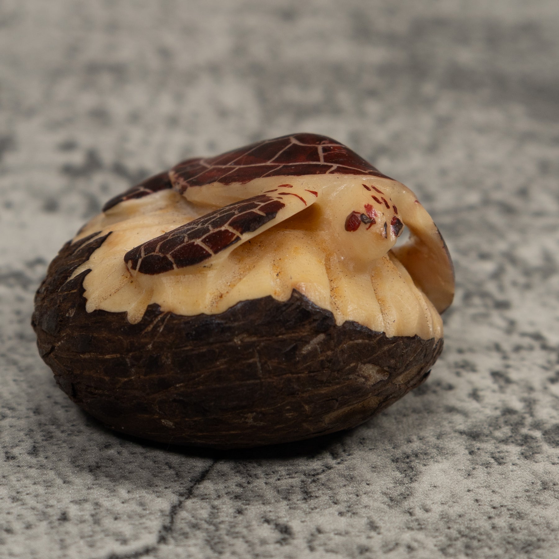 Hand carved from sustainably harvested tagua nut, often called “vegetable ivory”, this charming Sea Turtle celebrates the rich biodiversity of the Latin American rainforest. Each small sculpture is created by skilled artisans in Panama who carefully shape and polish the natural nut before bringing the animal to life with detailed hand painting. Every piece is made by our artisan partners for TraderBrock, helping support traditional craft and fair, long term relationships with local makers.