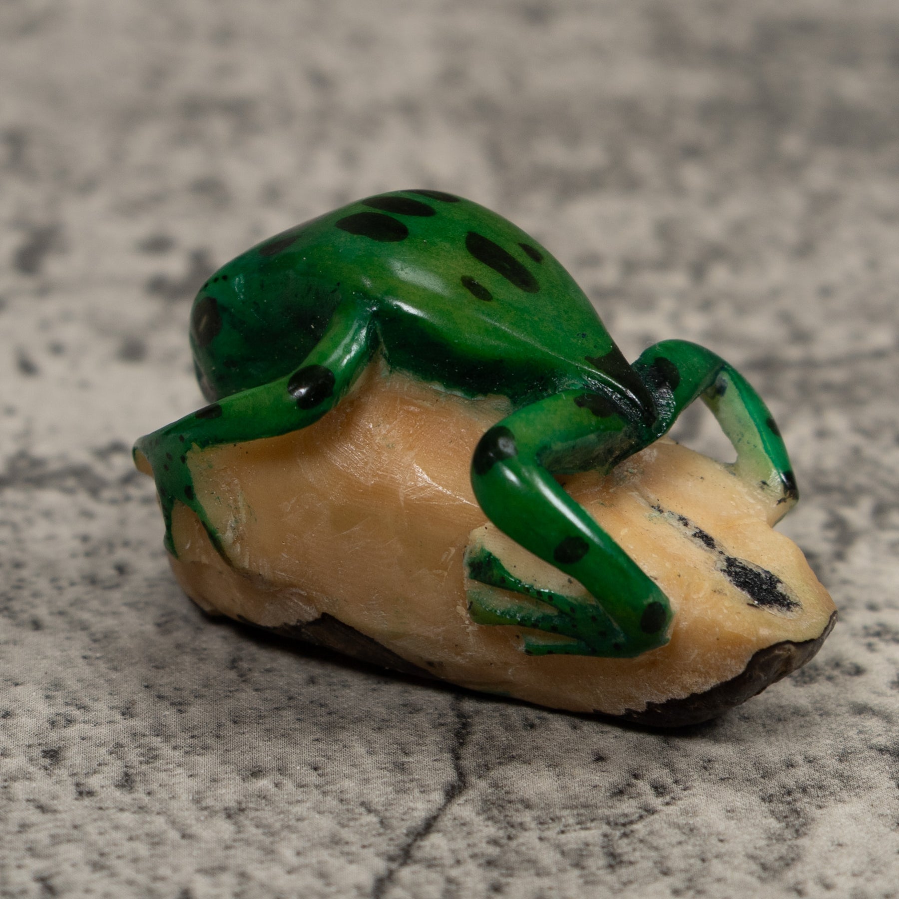 Vintage Black And Green Frog Tagua Carving