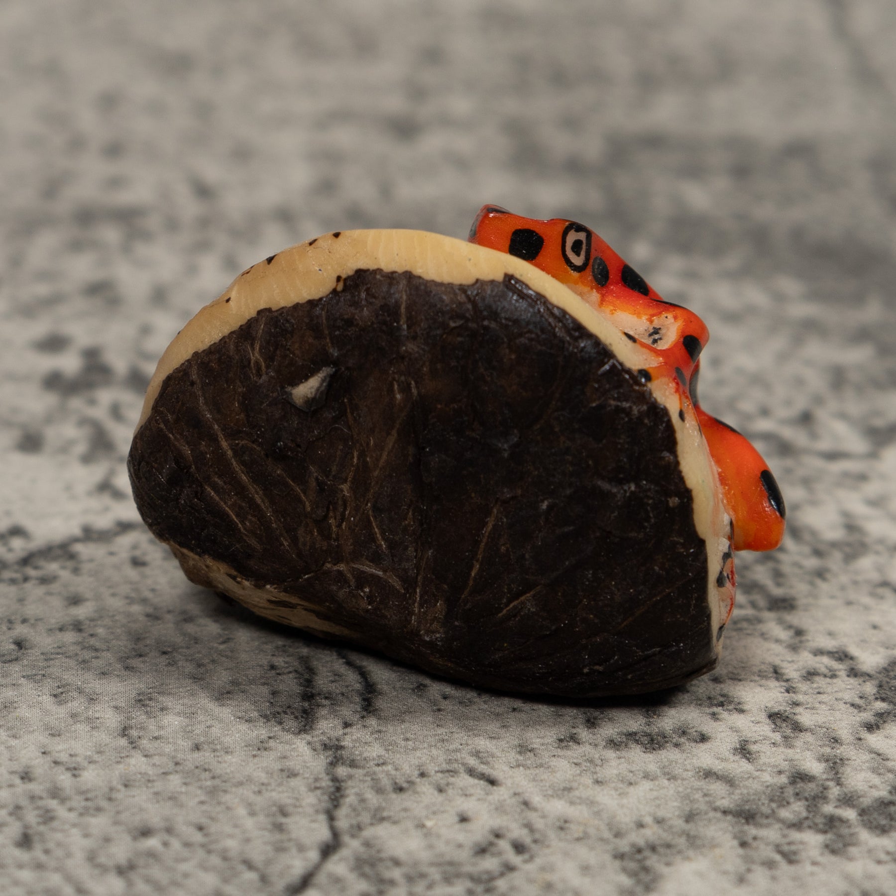 Hand carved from sustainably harvested tagua nut, often called “vegetable ivory”, this charming Frog celebrates the rich biodiversity of the Latin American rainforest. Each small sculpture is created by skilled artisans in Panama who carefully shape and polish the natural nut before bringing the animal to life with detailed hand painting. Every piece is made by our artisan partners for TraderBrock, helping support traditional craft and fair, long term relationships with local makers.