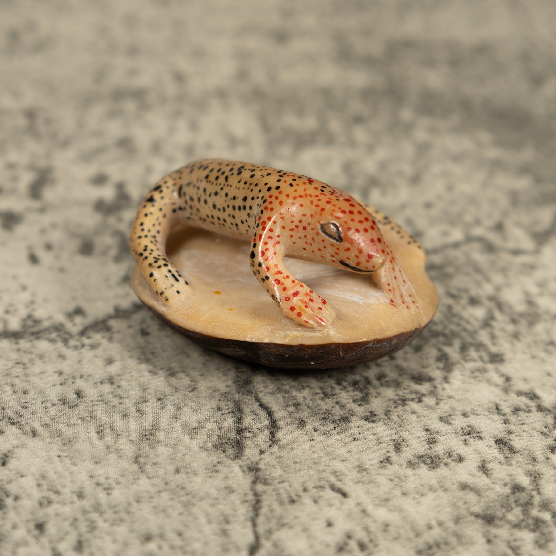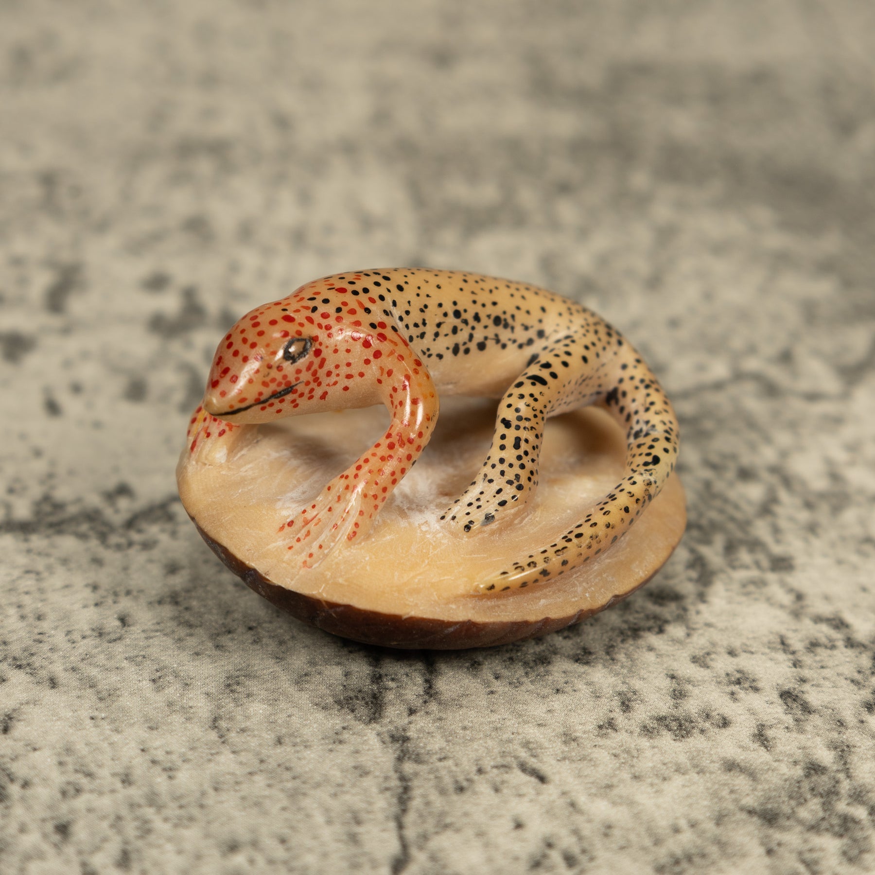 Vintage Black And Red Gecko Lizard Tagua Carving