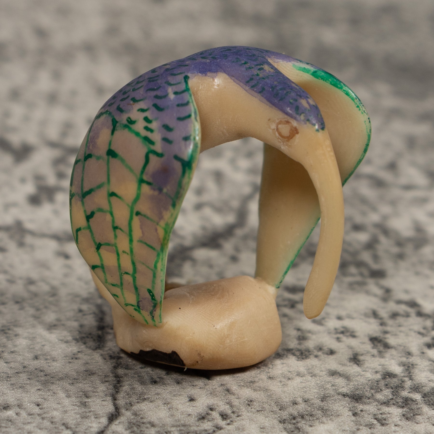 Vintage Blue And Green Hummingbird Tagua Carving