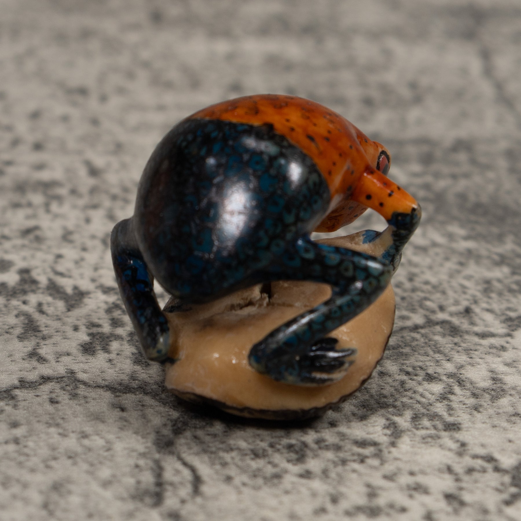 Hand carved from sustainably harvested tagua nut, often called “vegetable ivory”, this charming Frog celebrates the rich biodiversity of the Latin American rainforest. Each small sculpture is created by skilled artisans in Panama who carefully shape and polish the natural nut before bringing the animal to life with detailed hand painting. Every piece is made by our artisan partners for TraderBrock, helping support traditional craft and fair, long term relationships with local makers.