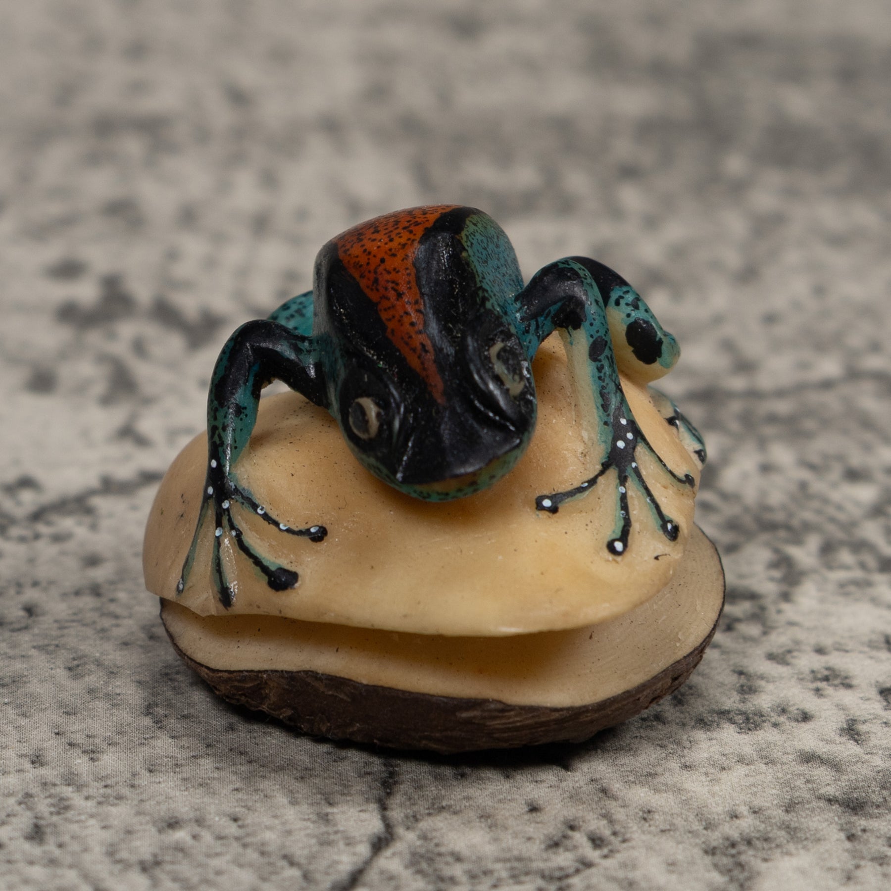 Vintage Blue And Red Poison Dart Frog Tagua Carving