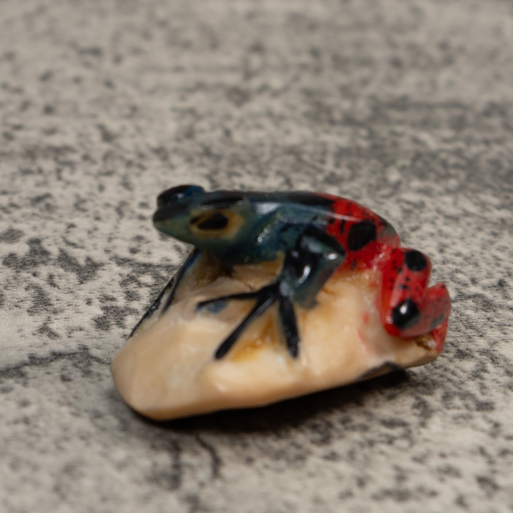 Vintage Blue Green And Black Poison Dart Frog Tagua Carving
