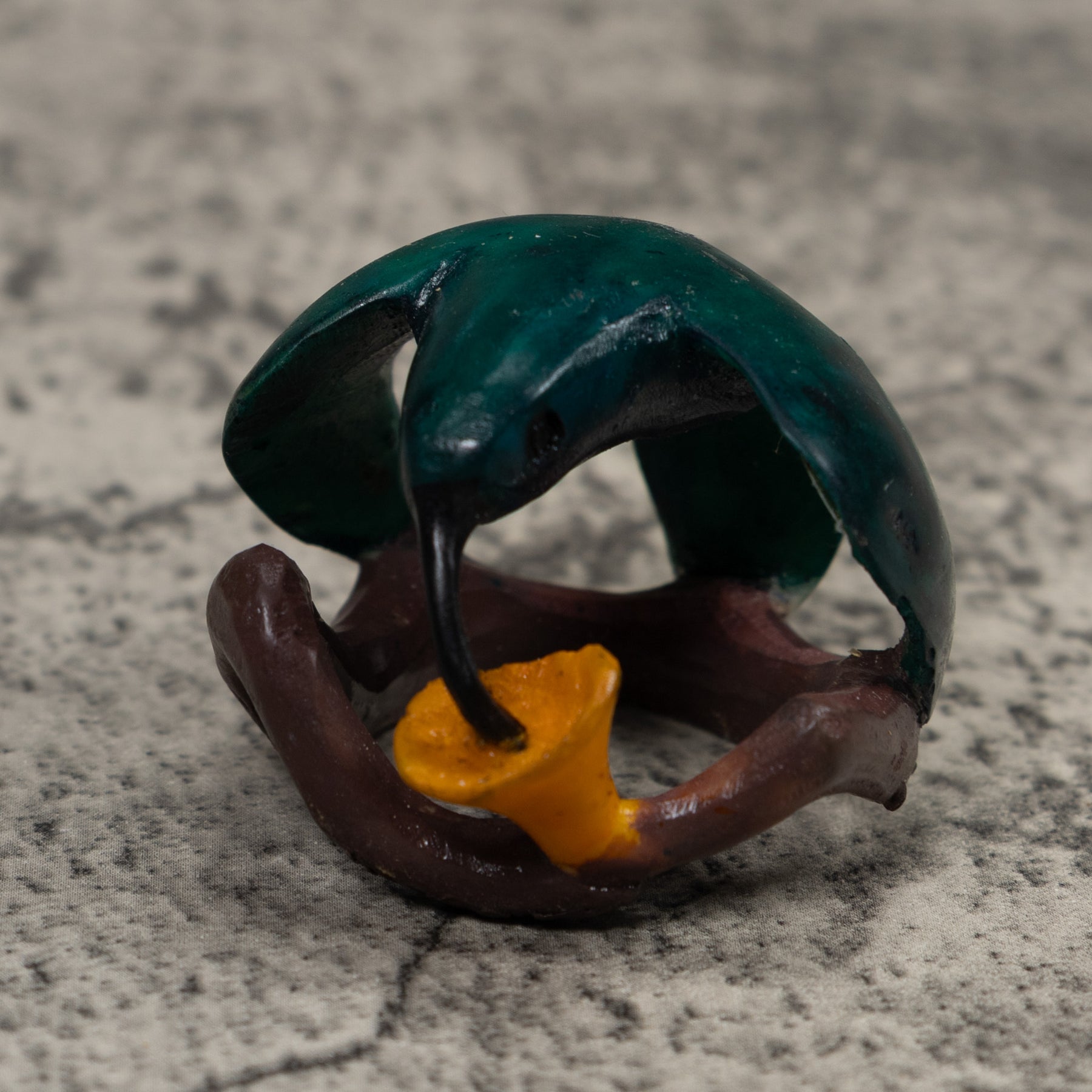 Vintage Blue Green And Yellow Hummingbird Tagua Carving
