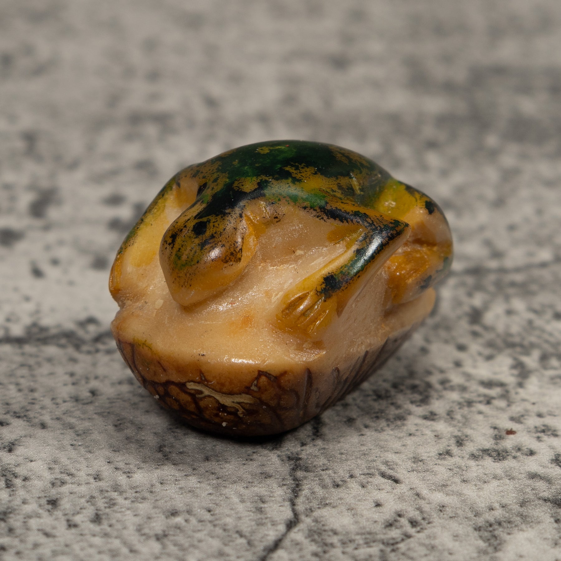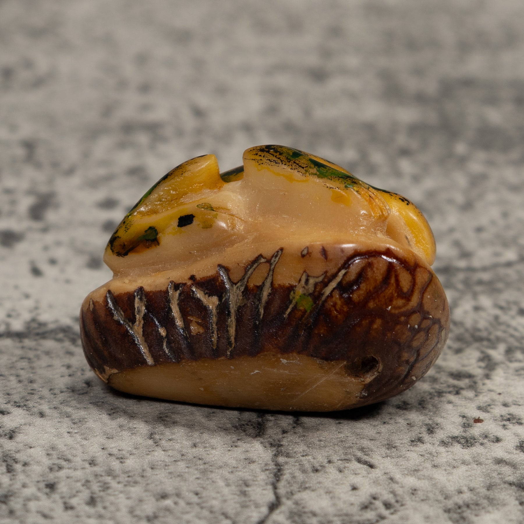 Hand carved from sustainably harvested tagua nut, often called “vegetable ivory”, this charming Frog celebrates the rich biodiversity of the Latin American rainforest. Each small sculpture is created by skilled artisans in Panama who carefully shape and polish the natural nut before bringing the animal to life with detailed hand painting. Every piece is made by our artisan partners for TraderBrock, helping support traditional craft and fair, long term relationships with local makers.