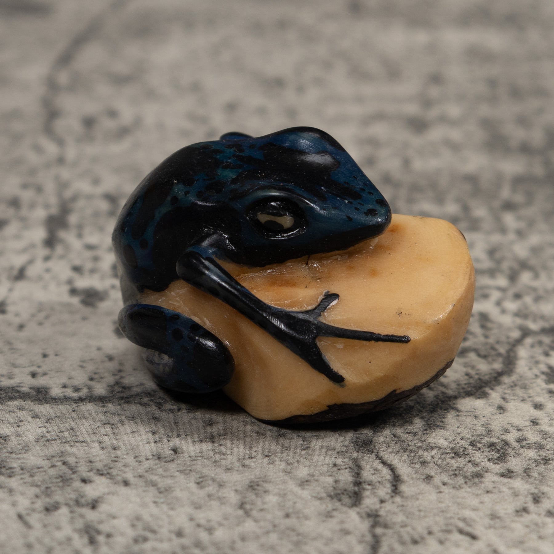 Hand carved from sustainably harvested tagua nut, often called “vegetable ivory”, this charming Frog celebrates the rich biodiversity of the Latin American rainforest. Each small sculpture is created by skilled artisans in Panama who carefully shape and polish the natural nut before bringing the animal to life with detailed hand painting. Every piece is made by our artisan partners for TraderBrock, helping support traditional craft and fair, long term relationships with local makers.