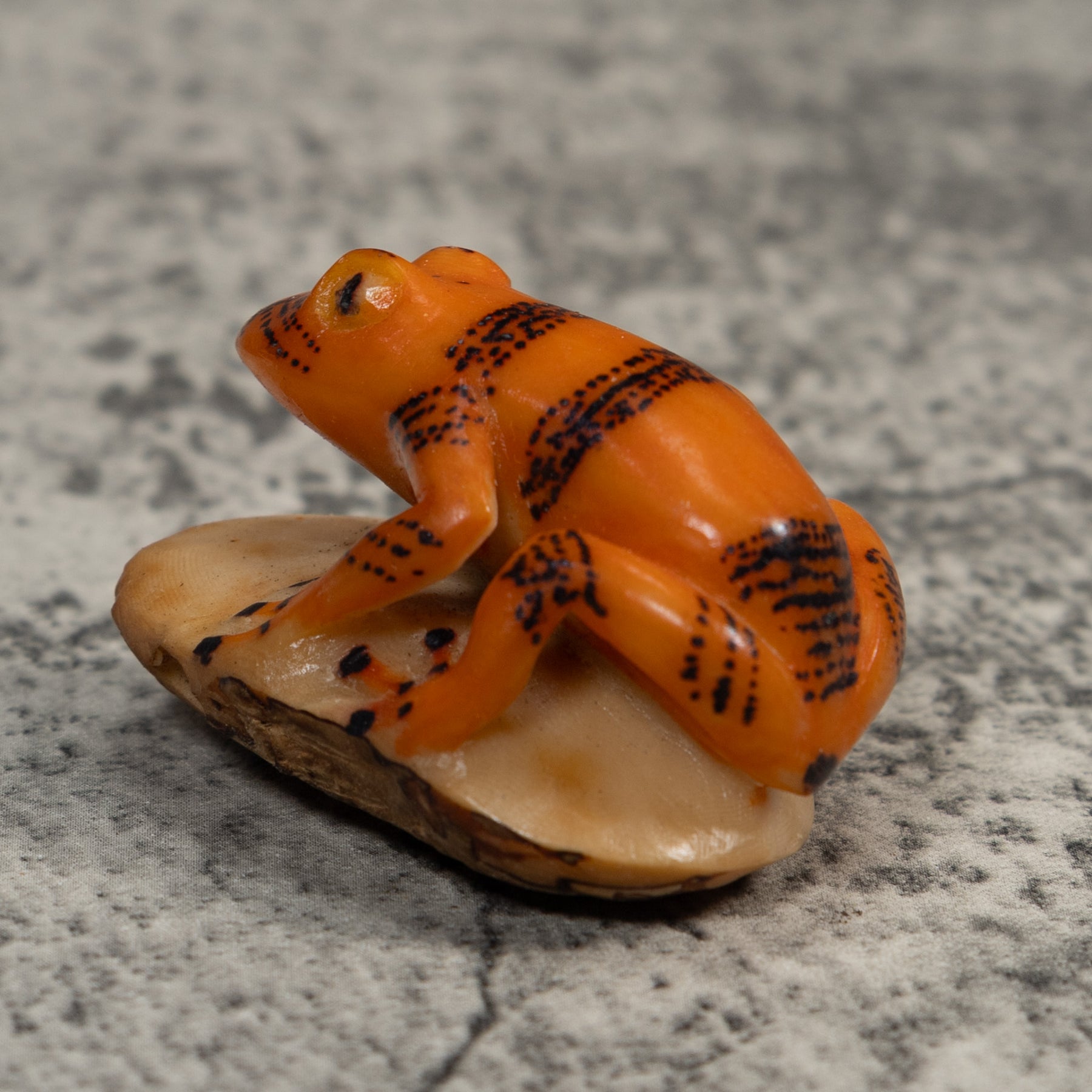 Vintage Gold And Black Poison Dart Frog Tagua Carving