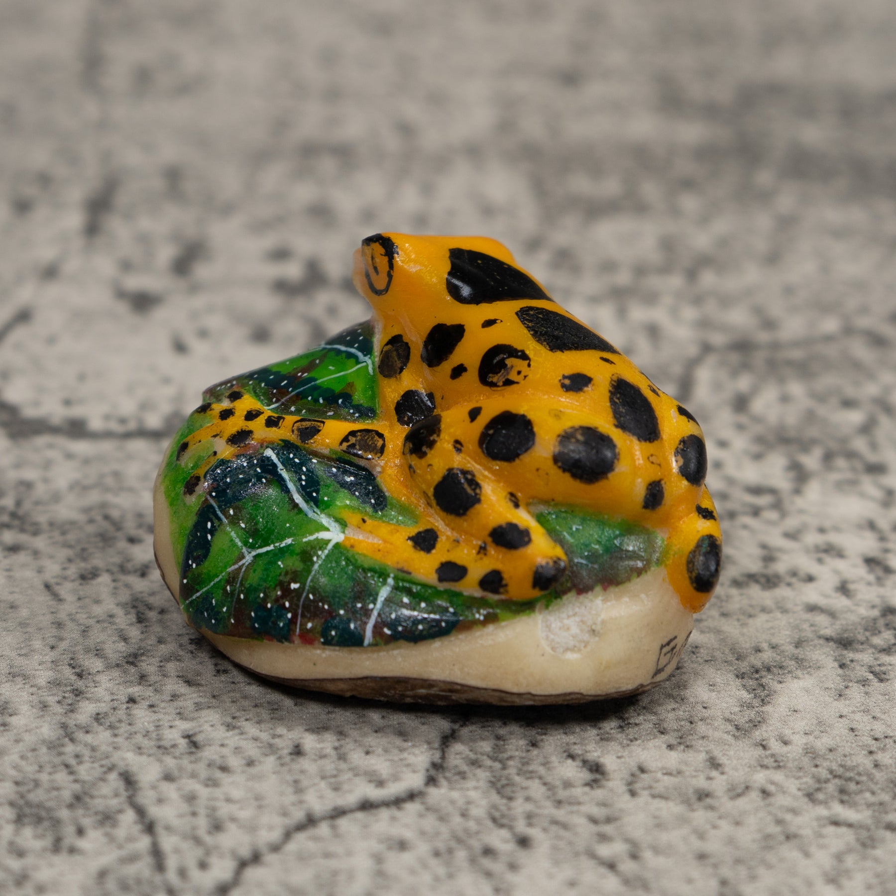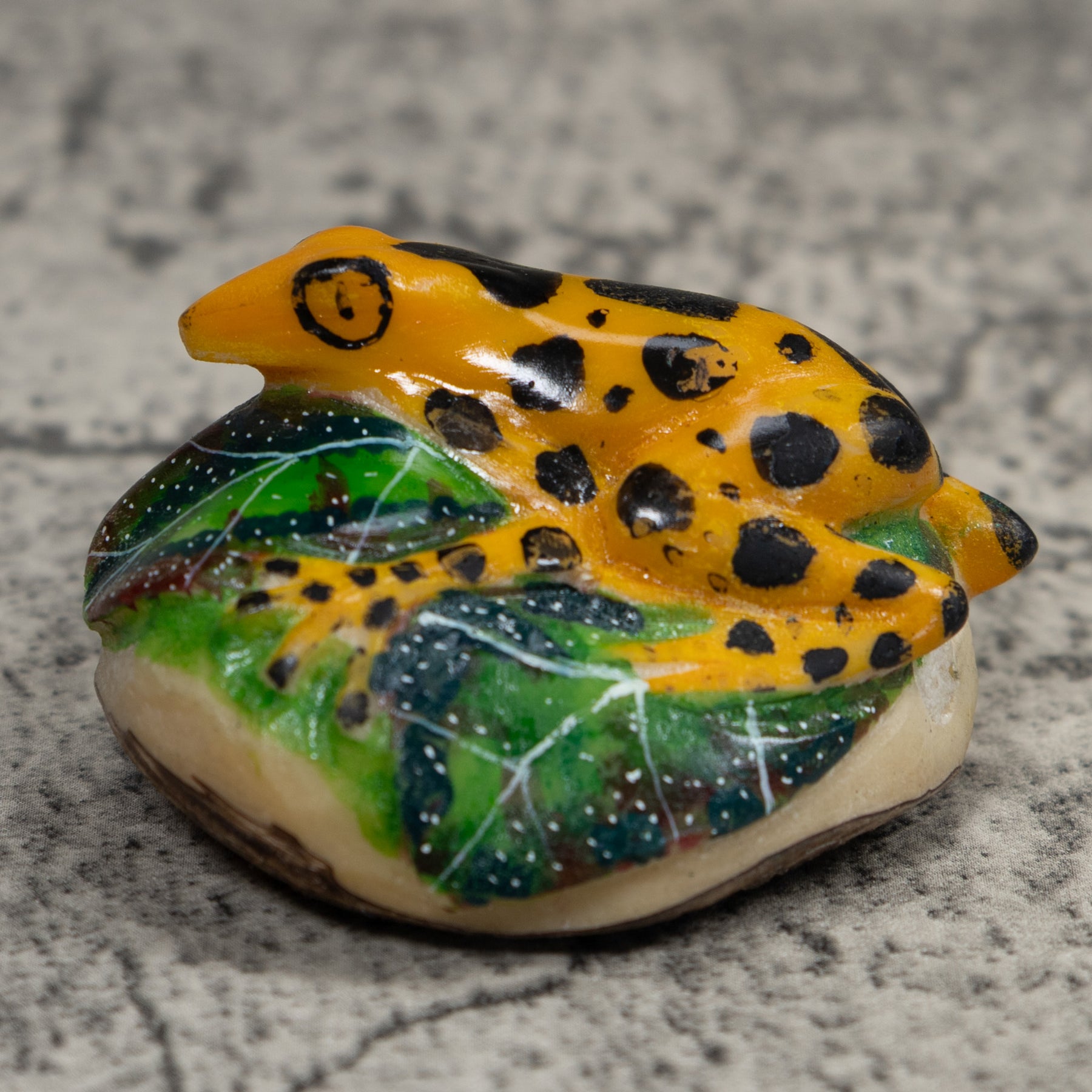 Gold Green And Black Frog Tagua Carving