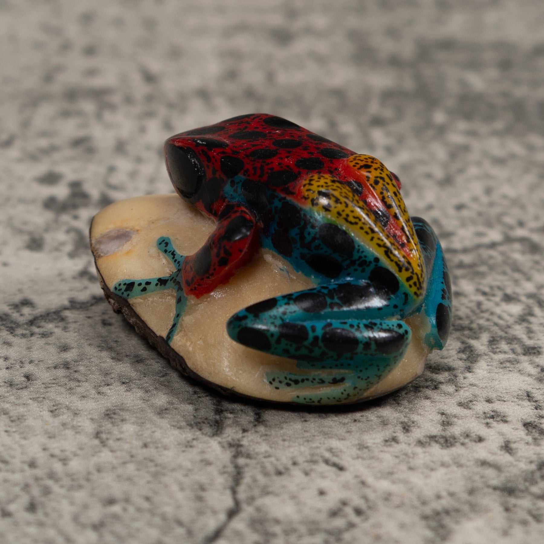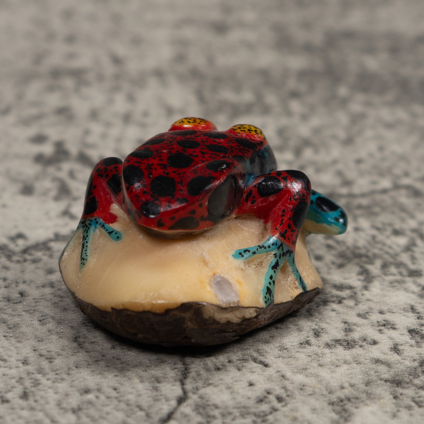 Vintage Red Blue And Yellow Frog Tagua Carving