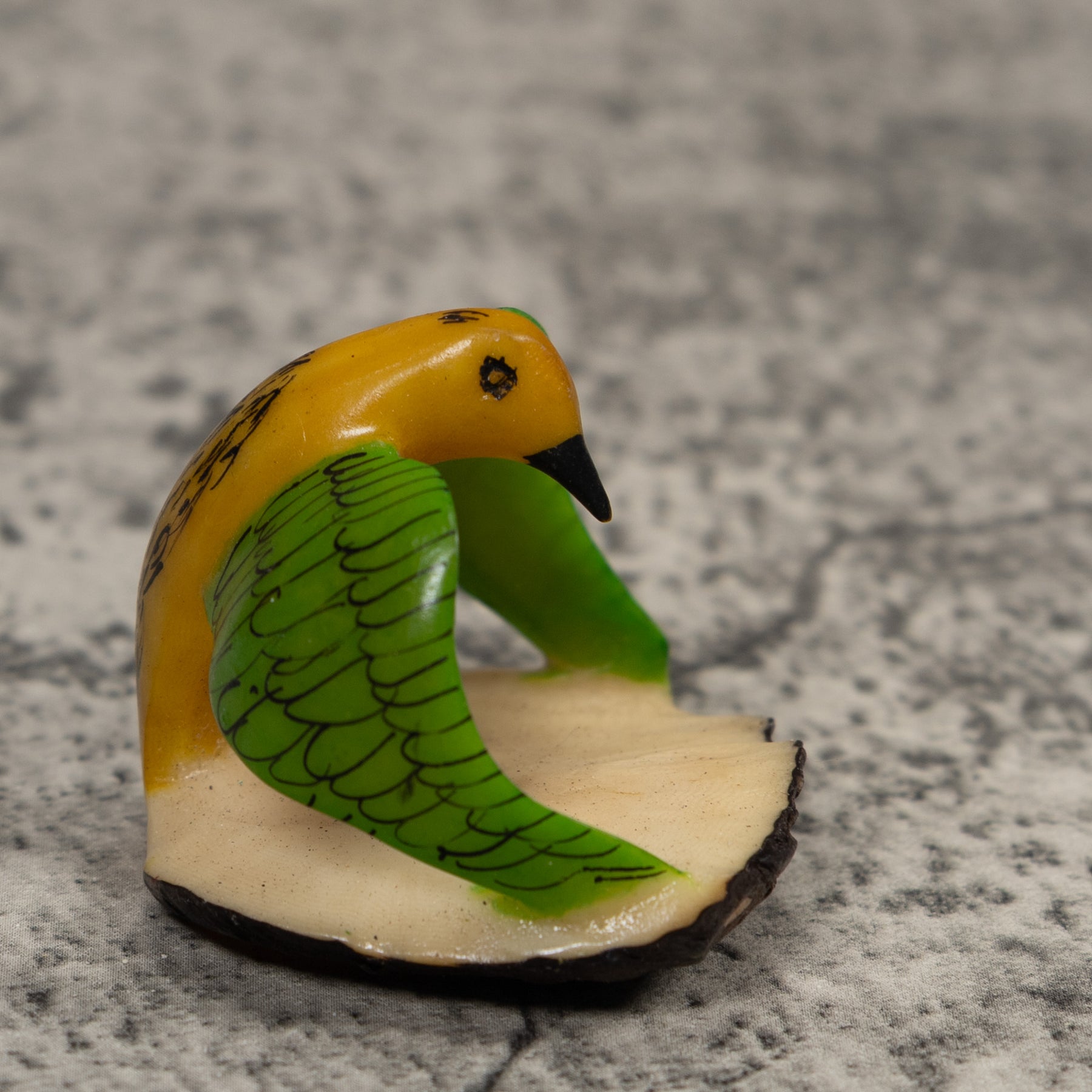 Vintage Yellow And Green Bird Tagua Carving