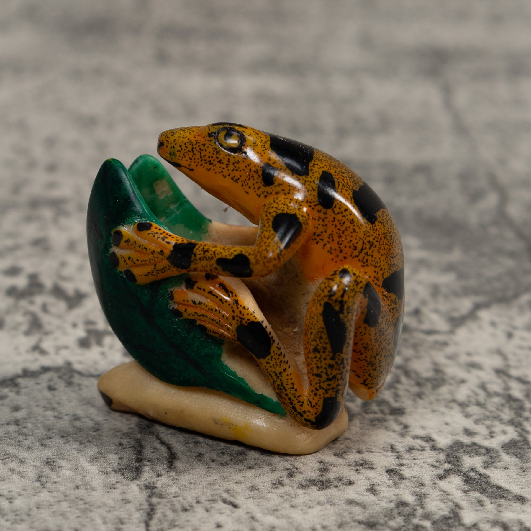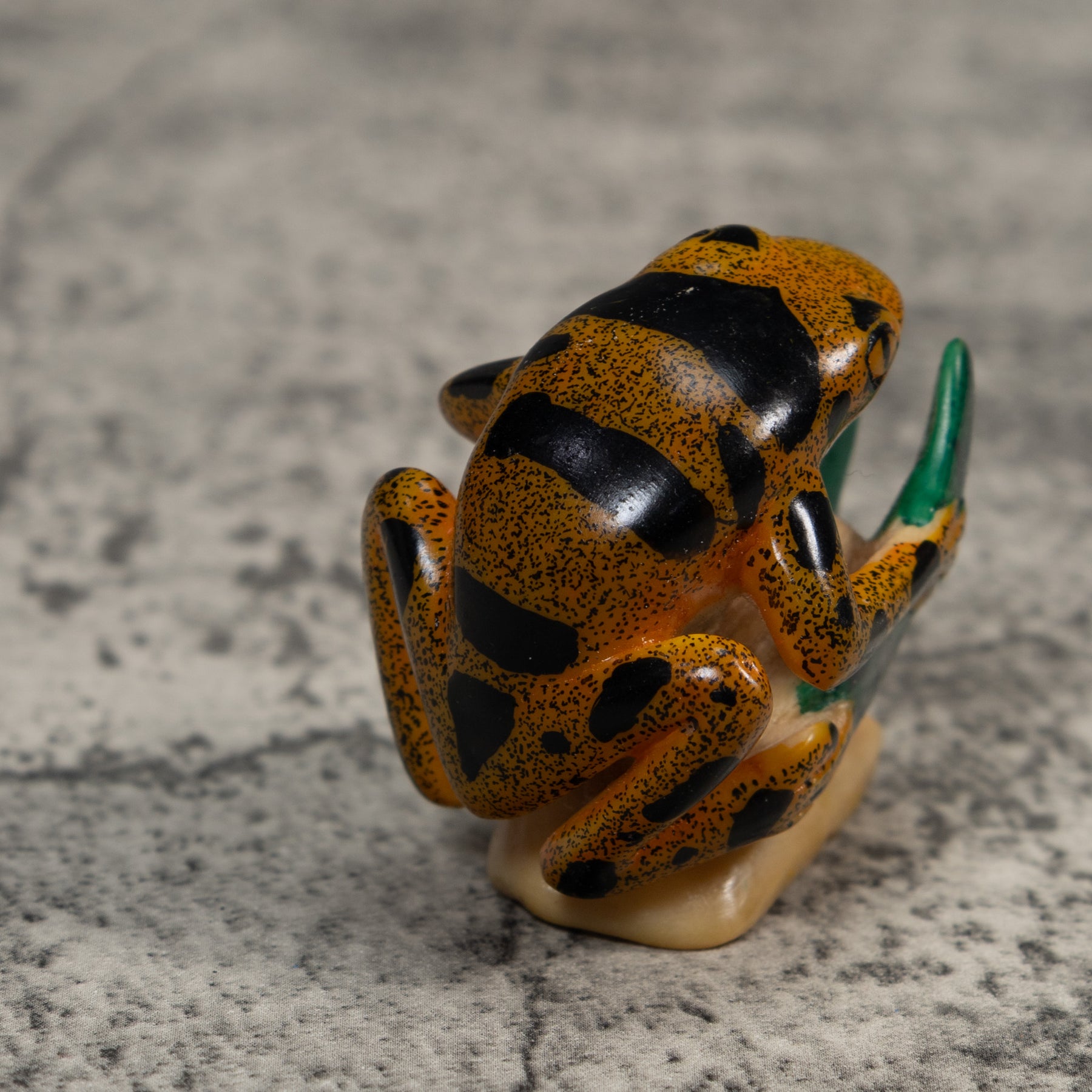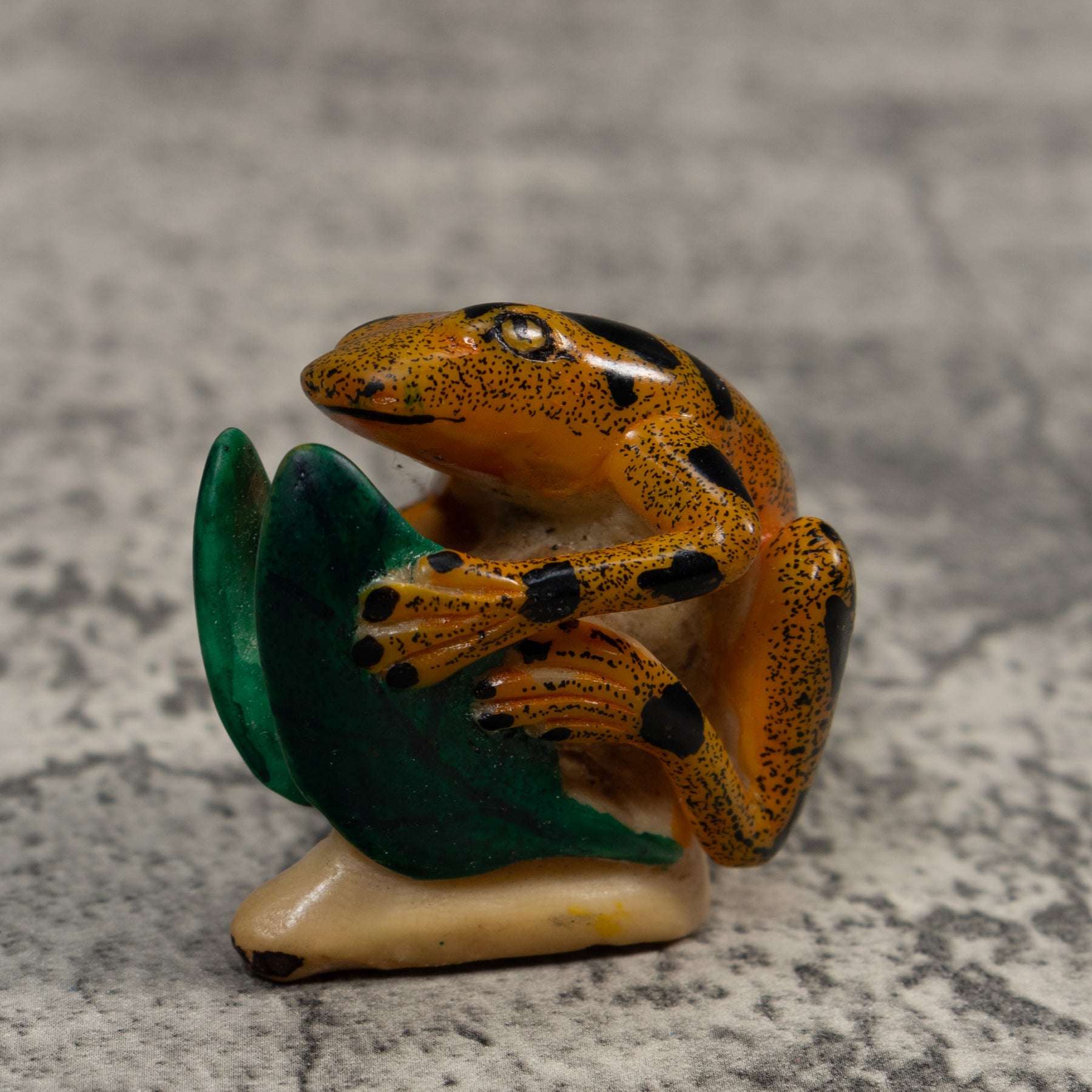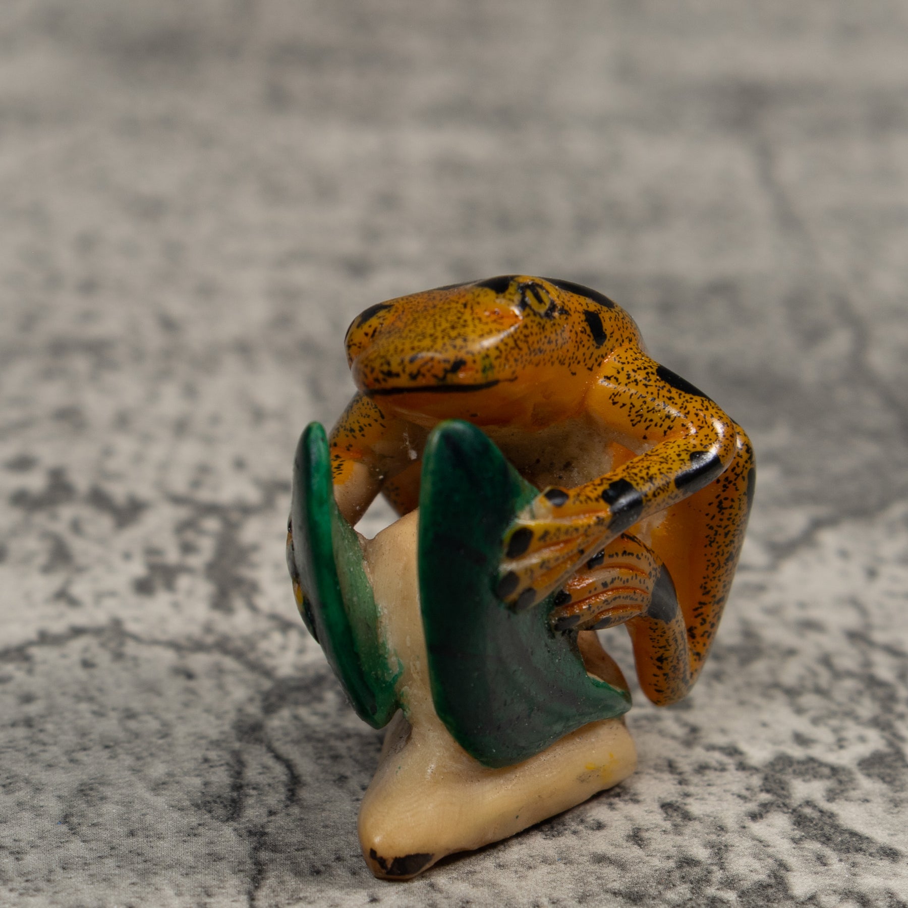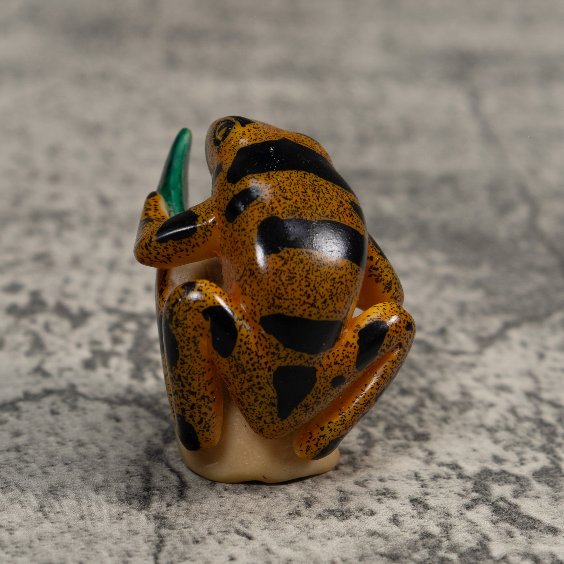 Black And Gold Poison Dart Frog With Leaves Tagua Carving