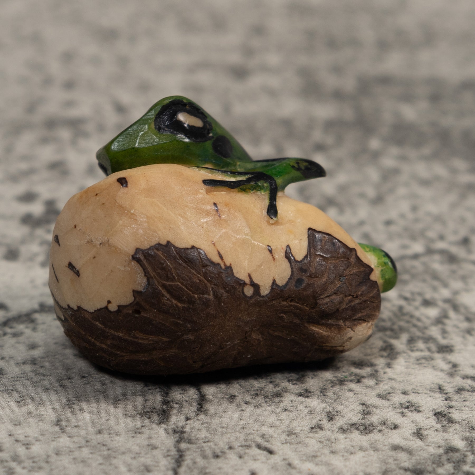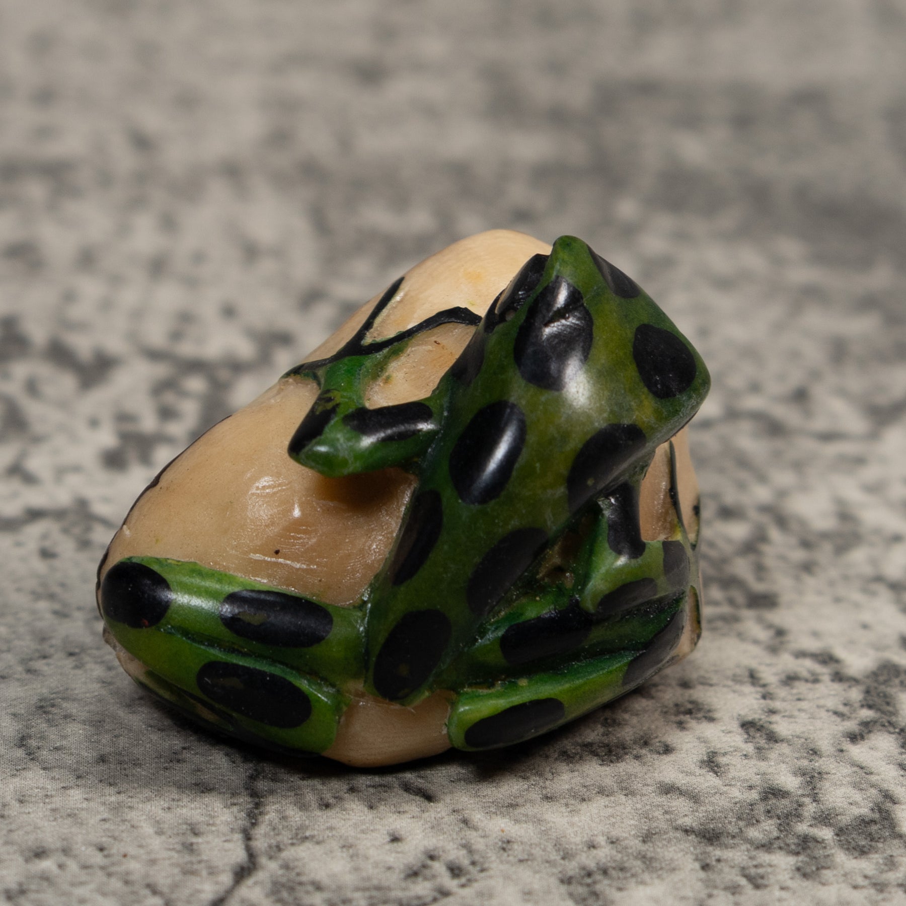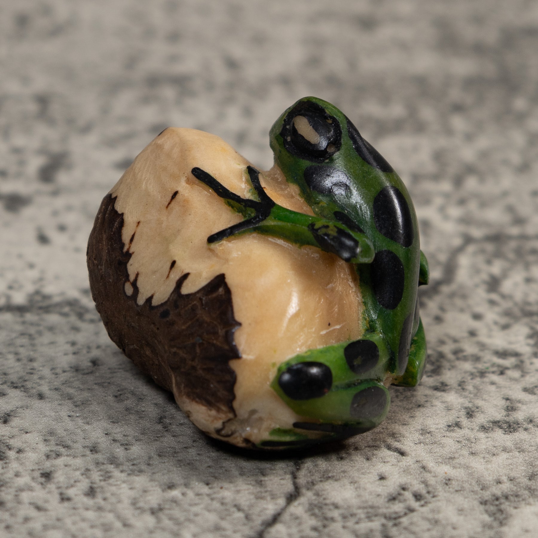 Hand carved from sustainably harvested tagua nut, often called “vegetable ivory”, this charming Frog celebrates the rich biodiversity of the Latin American rainforest. Each small sculpture is created by skilled artisans in Panama who carefully shape and polish the natural nut before bringing the animal to life with detailed hand painting. Every piece is made by our artisan partners for TraderBrock, helping support traditional craft and fair, long term relationships with local makers.