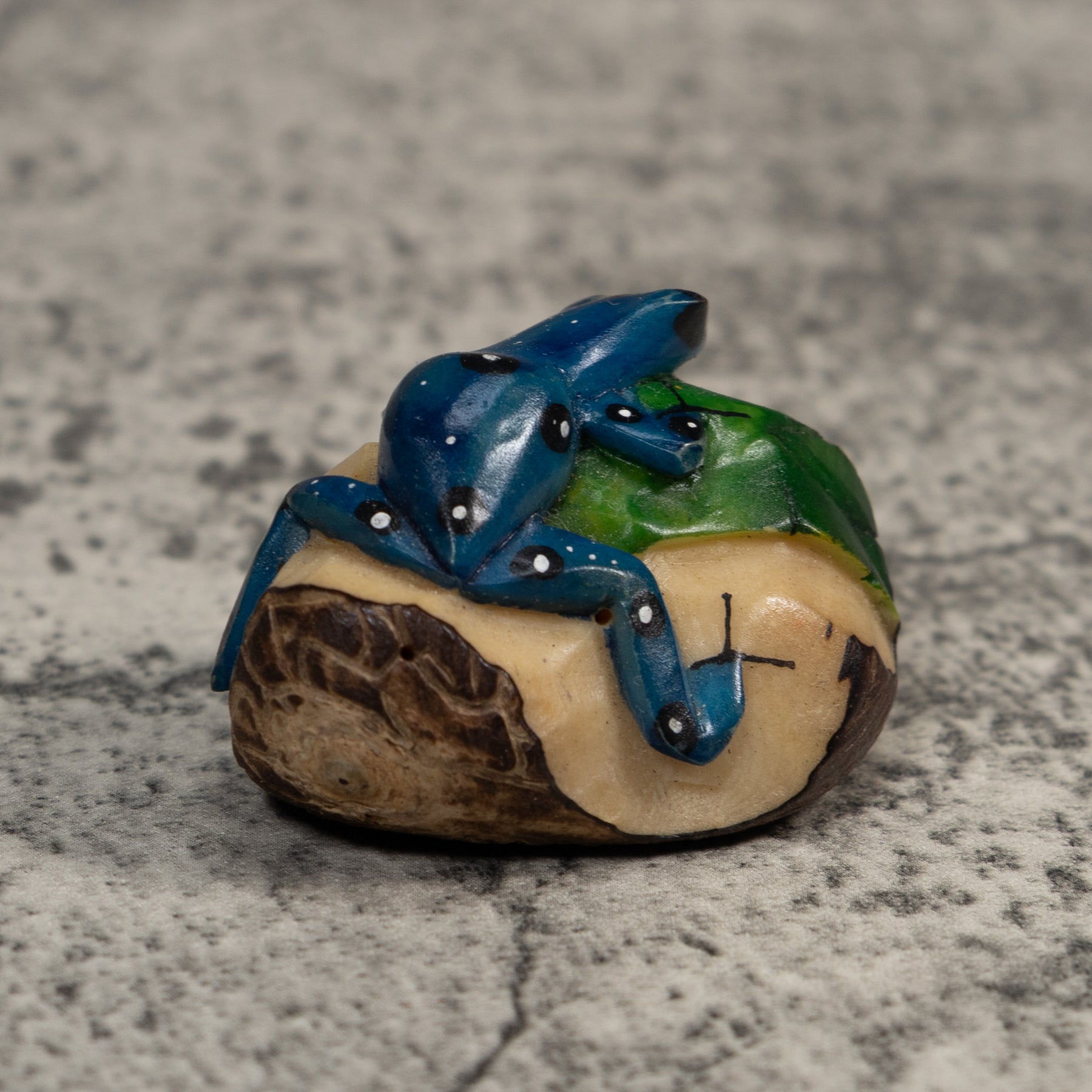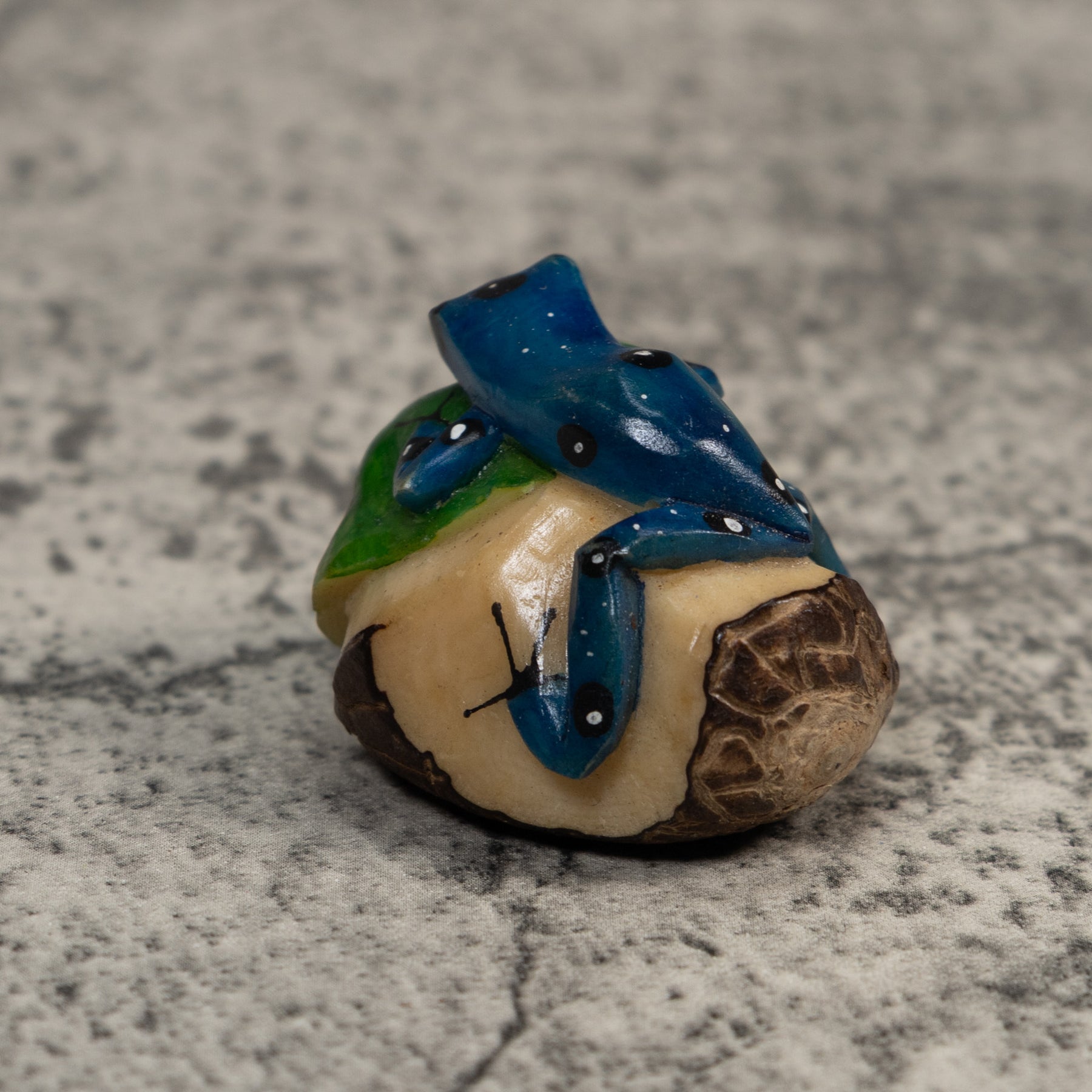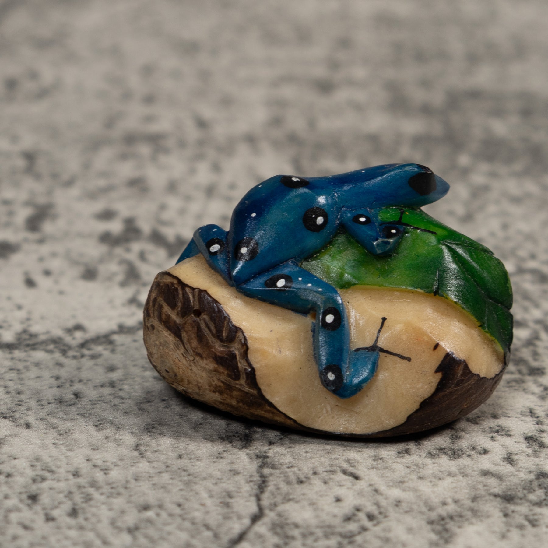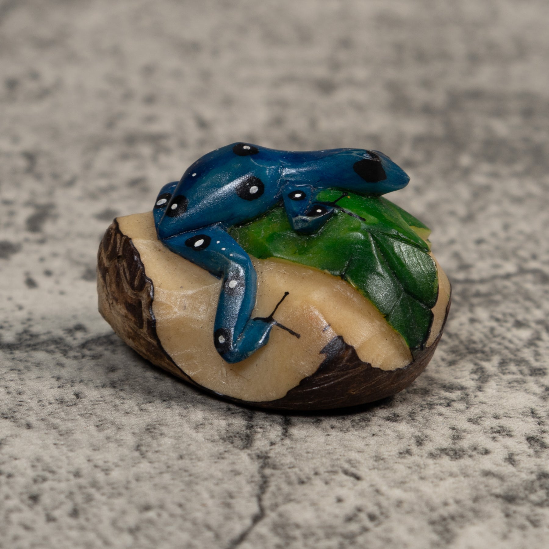 Black Blue And White Poison Dart Frog Tagua Carving