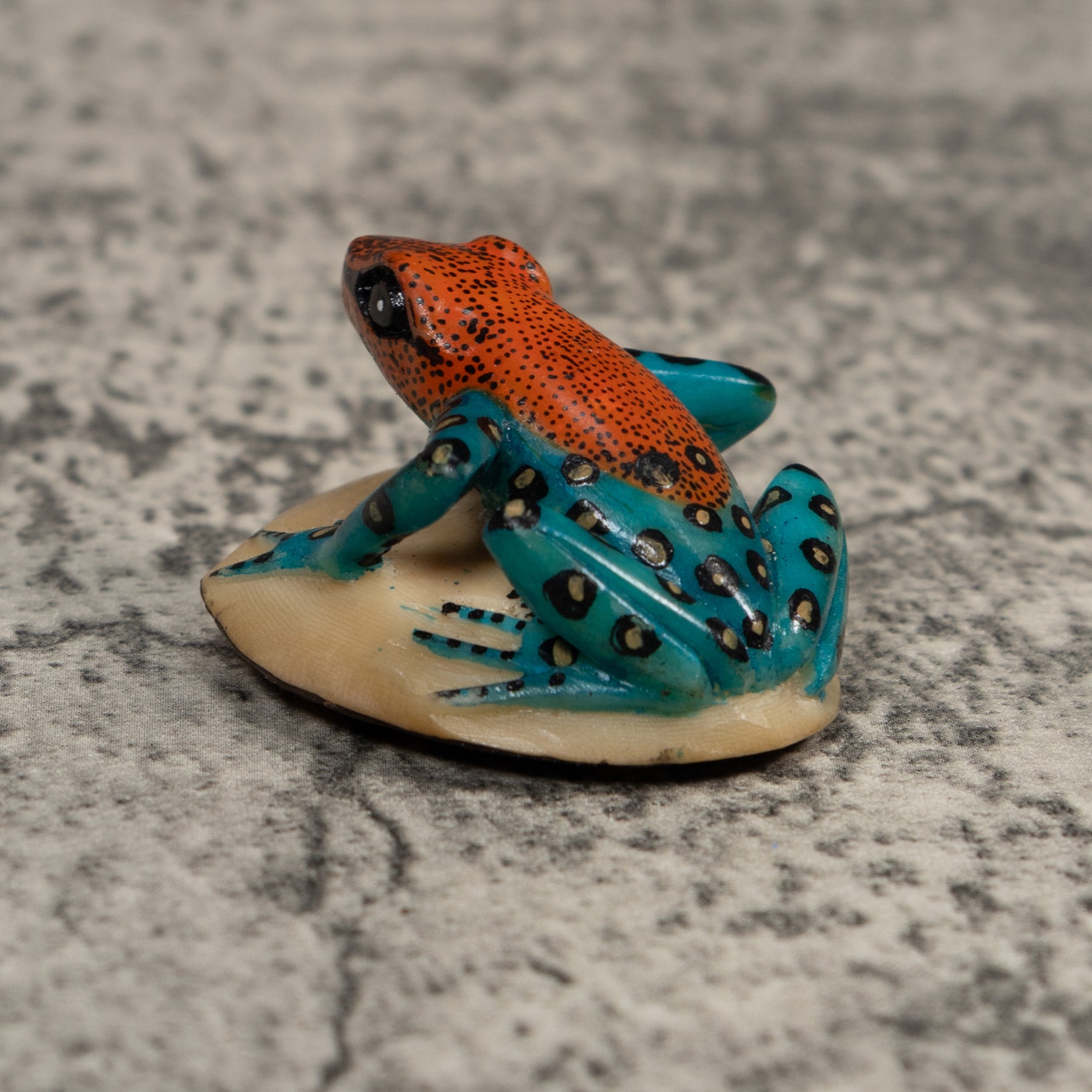 Black Blue And Red Poison Dart Frog Tagua Carving