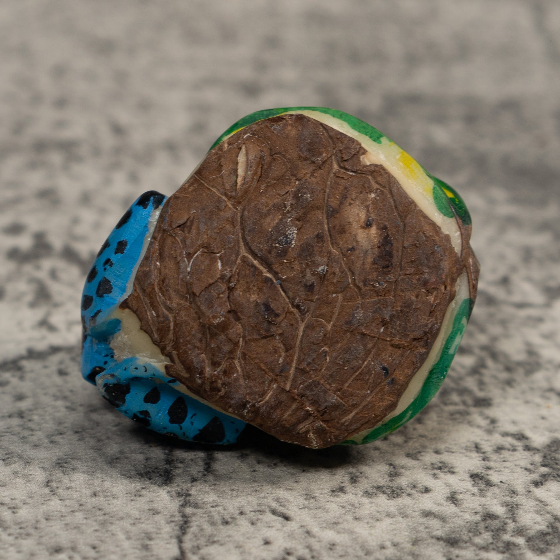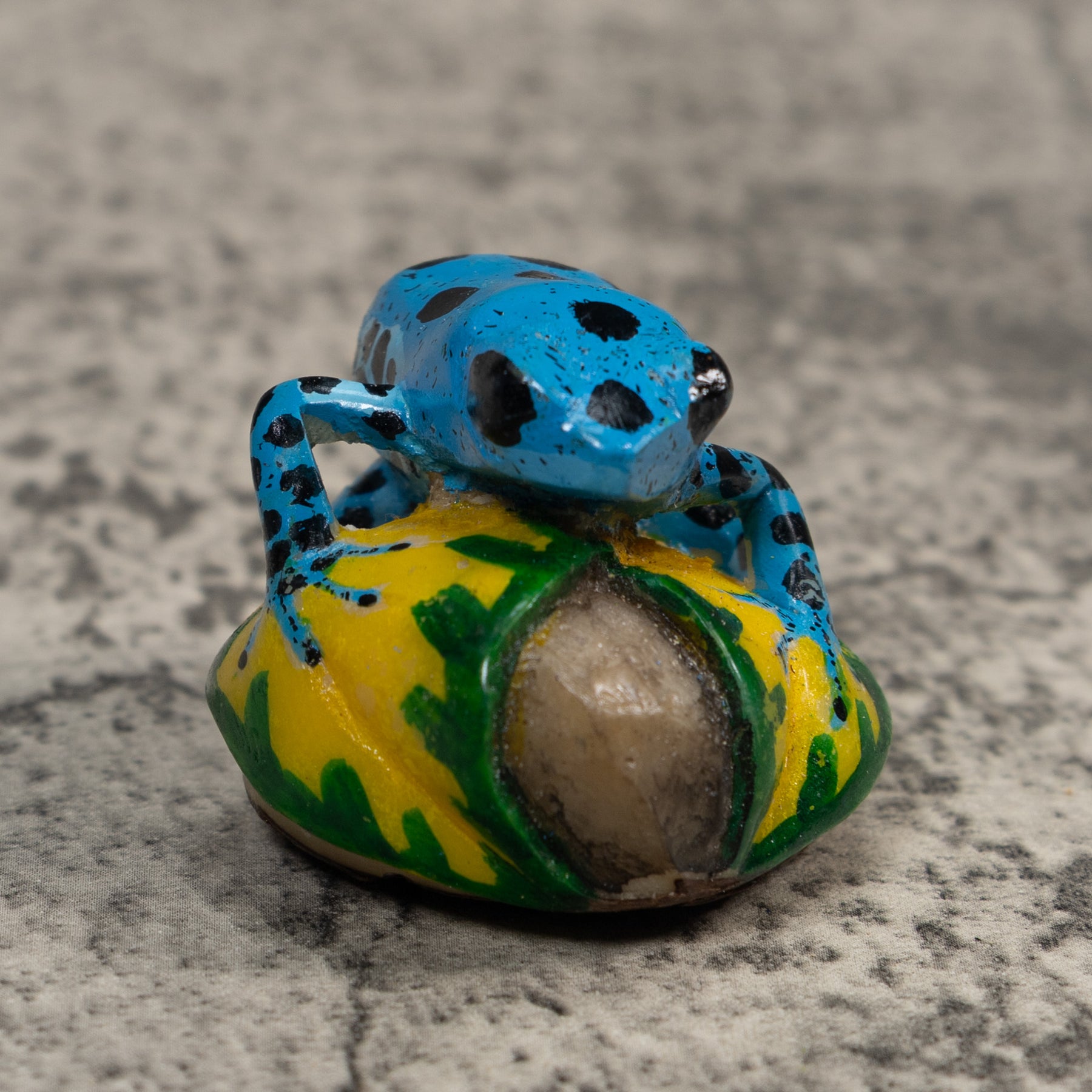Hand carved from sustainably harvested tagua nut, often called “vegetable ivory”, this charming Frog celebrates the rich biodiversity of the Latin American rainforest. Each small sculpture is created by skilled artisans in Panama who carefully shape and polish the natural nut before bringing the animal to life with detailed hand painting. Every piece is made by our artisan partners for TraderBrock, helping support traditional craft and fair, long term relationships with local makers.