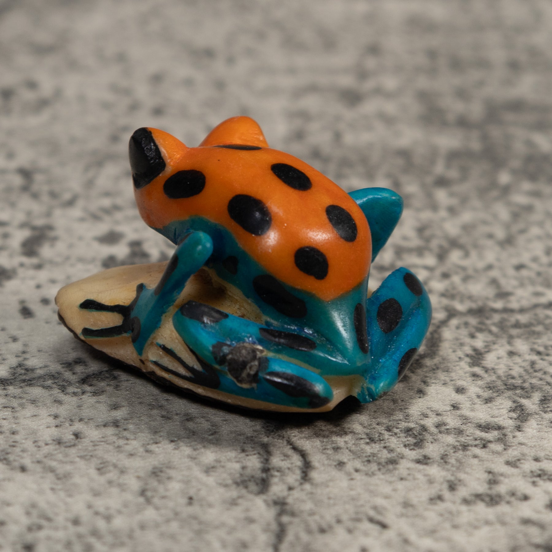 Hand carved from sustainably harvested tagua nut, often called “vegetable ivory”, this charming Frog celebrates the rich biodiversity of the Latin American rainforest. Each small sculpture is created by skilled artisans in Panama who carefully shape and polish the natural nut before bringing the animal to life with detailed hand painting. Every piece is made by our artisan partners for TraderBrock, helping support traditional craft and fair, long term relationships with local makers.
