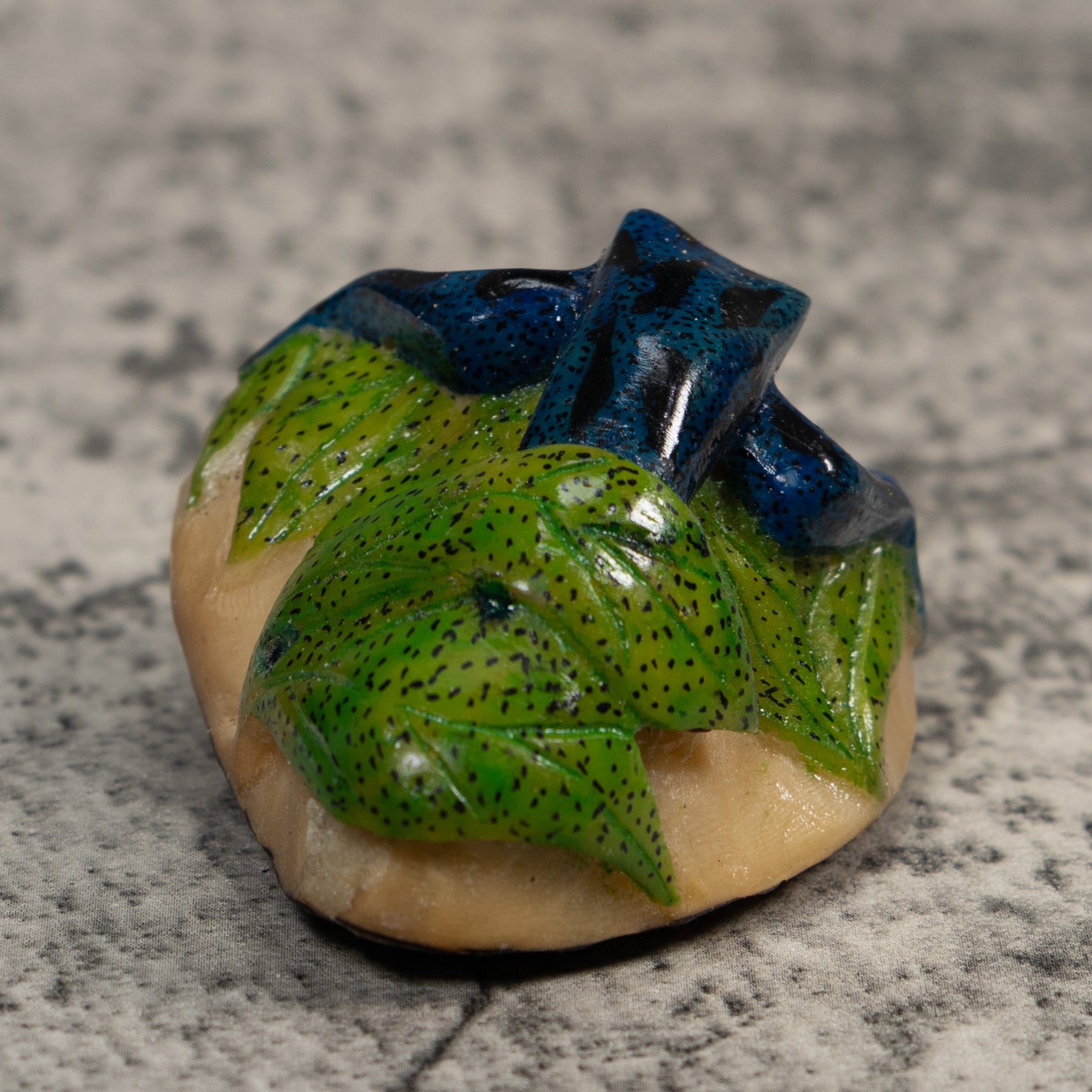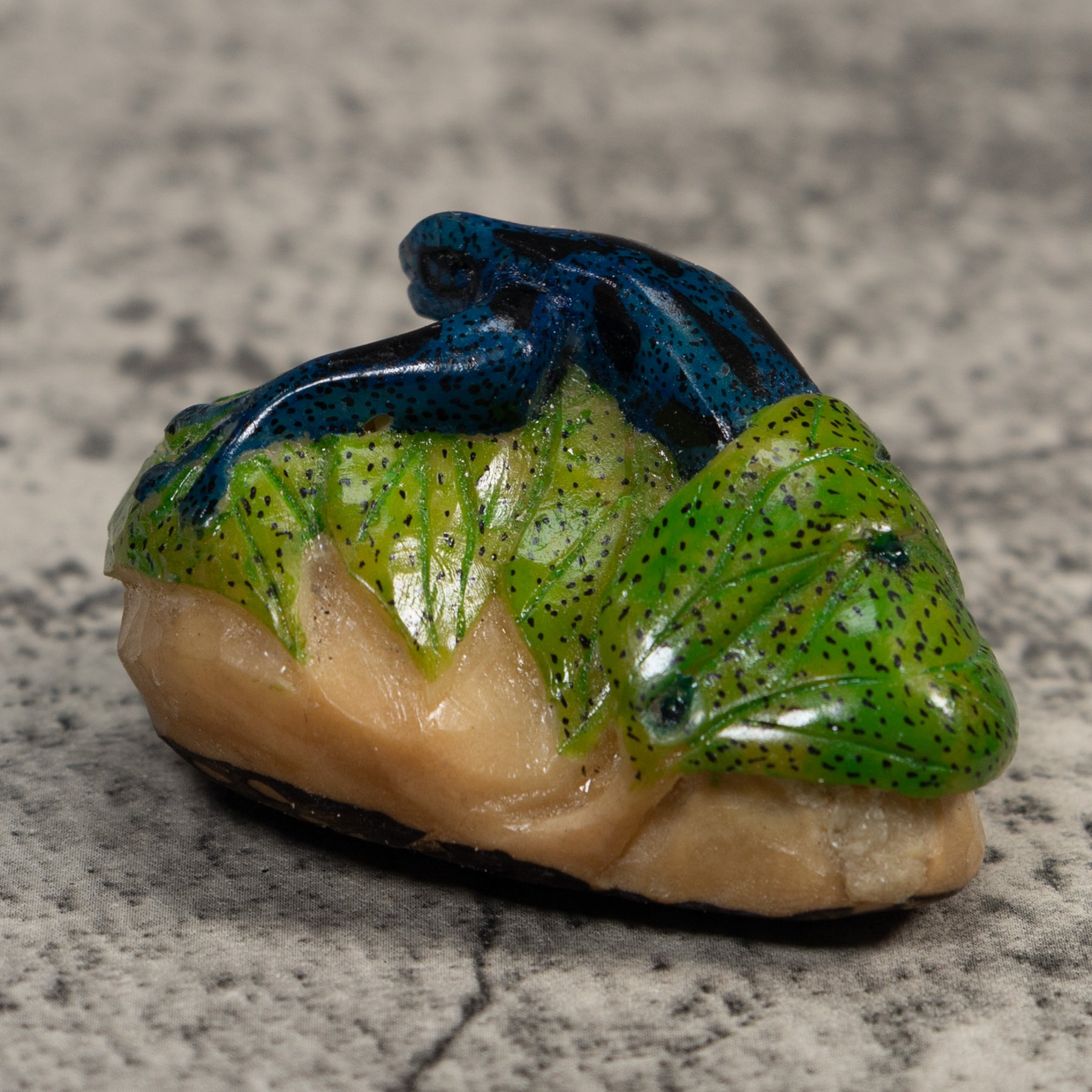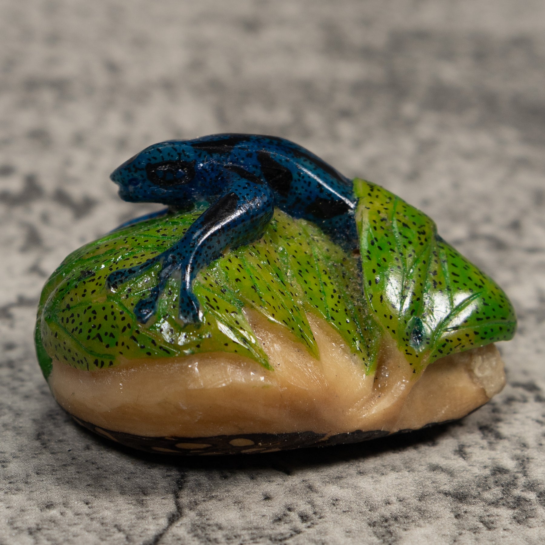 Hand carved from sustainably harvested tagua nut, often called “vegetable ivory”, this charming Frog celebrates the rich biodiversity of the Latin American rainforest. Each small sculpture is created by skilled artisans in Panama who carefully shape and polish the natural nut before bringing the animal to life with detailed hand painting. Every piece is made by our artisan partners for TraderBrock, helping support traditional craft and fair, long term relationships with local makers.