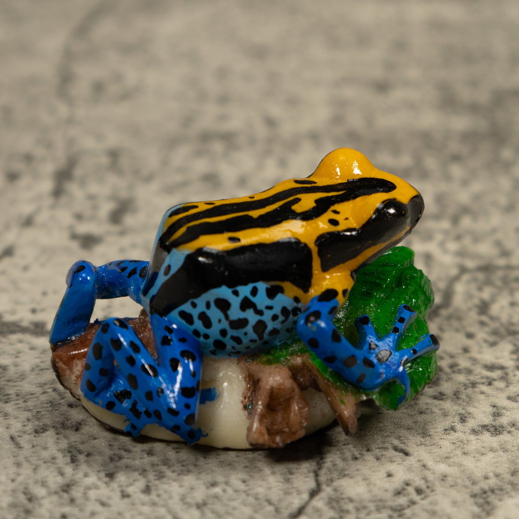 Blue Golden And Black Poison Dart Frog Tagua Carving