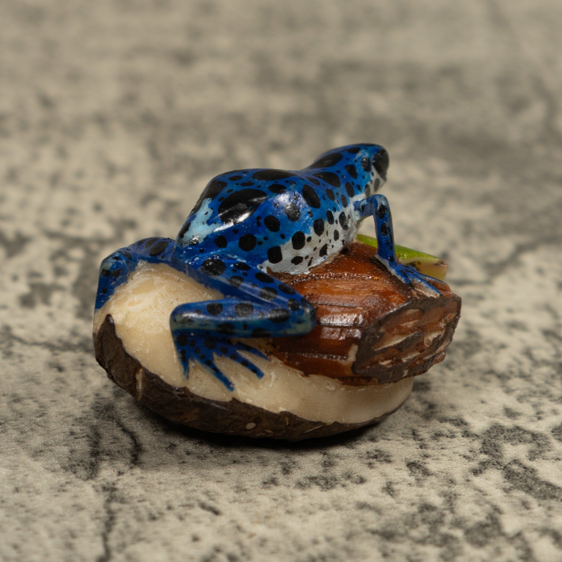 Hand carved from sustainably harvested tagua nut, often called “vegetable ivory”, this charming Blue Poison Dart Frog Tagua Carving celebrates the rich biodiversity of the Latin American rainforest. Each small sculpture is created by skilled artisans in Panama who carefully shape and polish the natural nut before bringing the animal to life with detailed hand painting. Every piece is made by our artisan partners for TraderBrock, helping support traditional craft and fair, long term relationships with local makers.