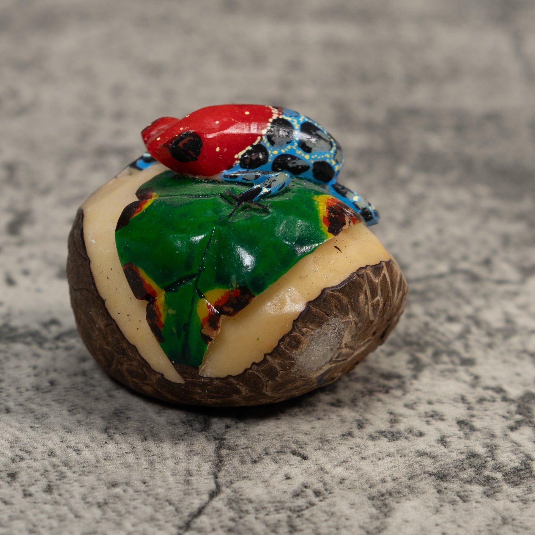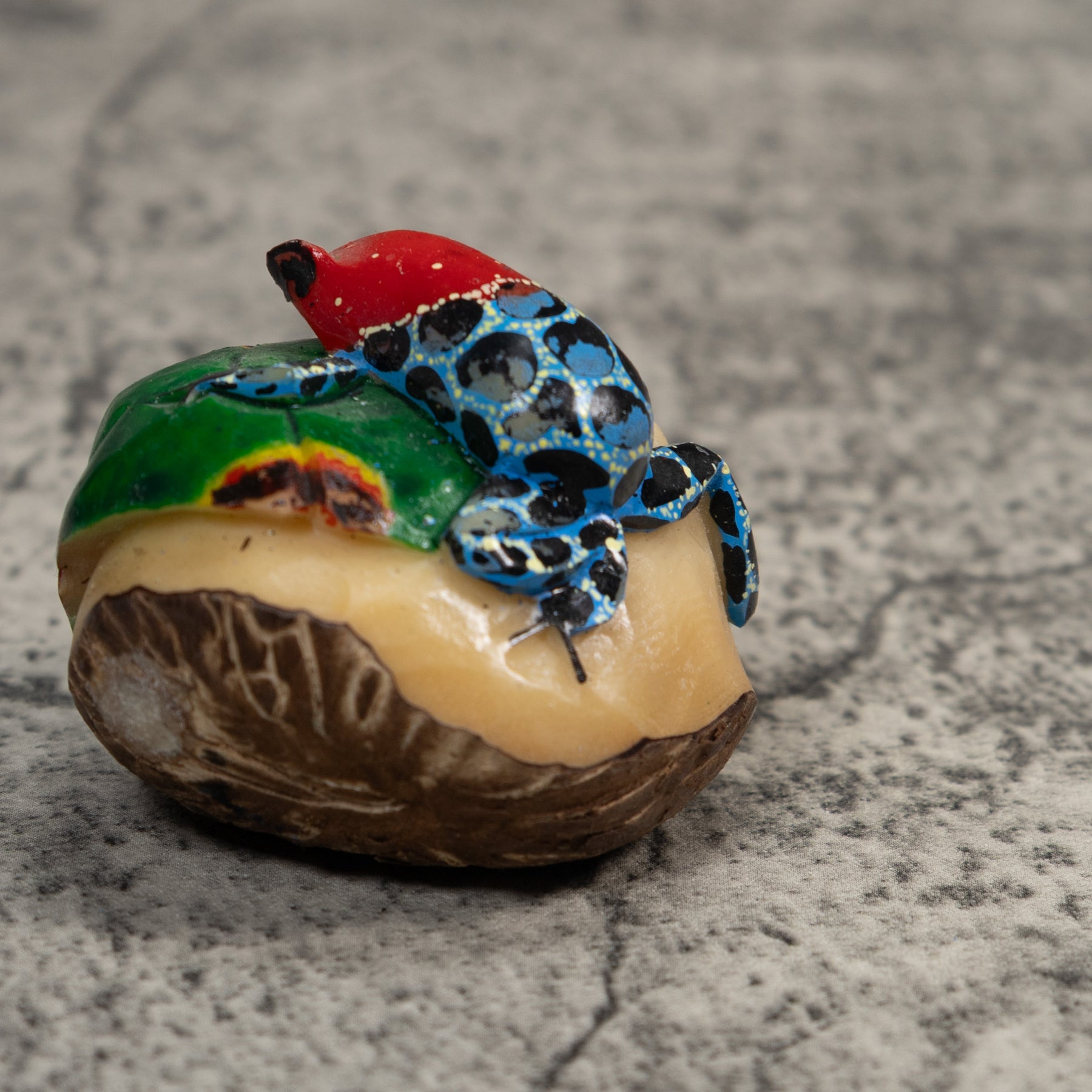 Blue Red And Black Poison Dart Frog Tagua Carving