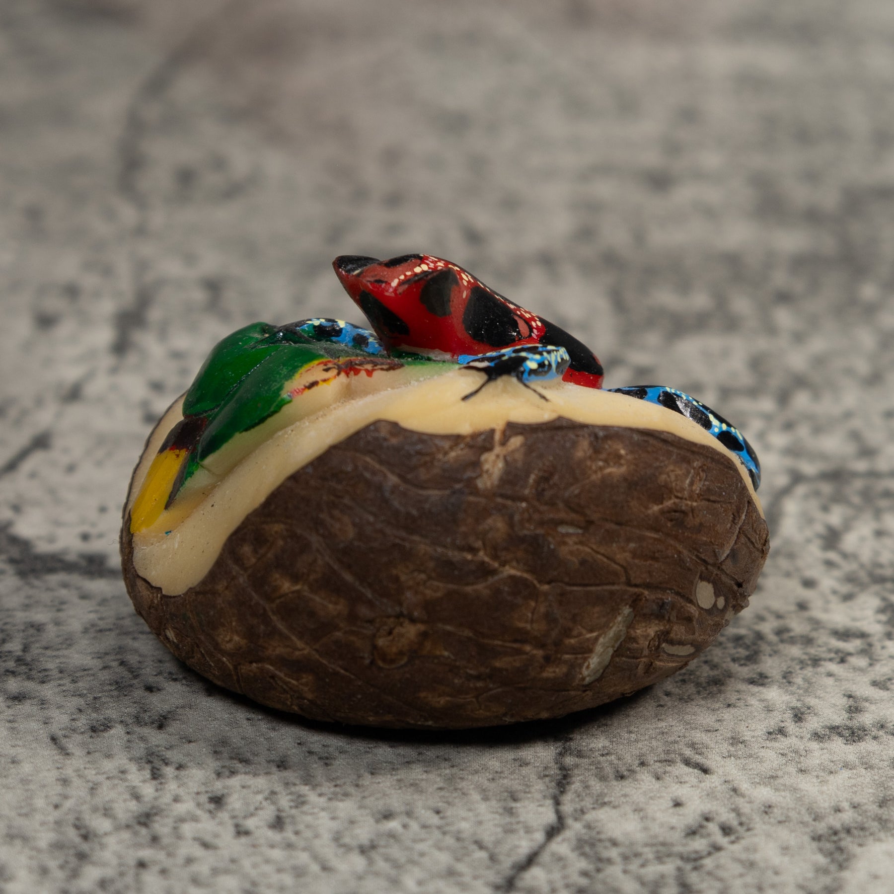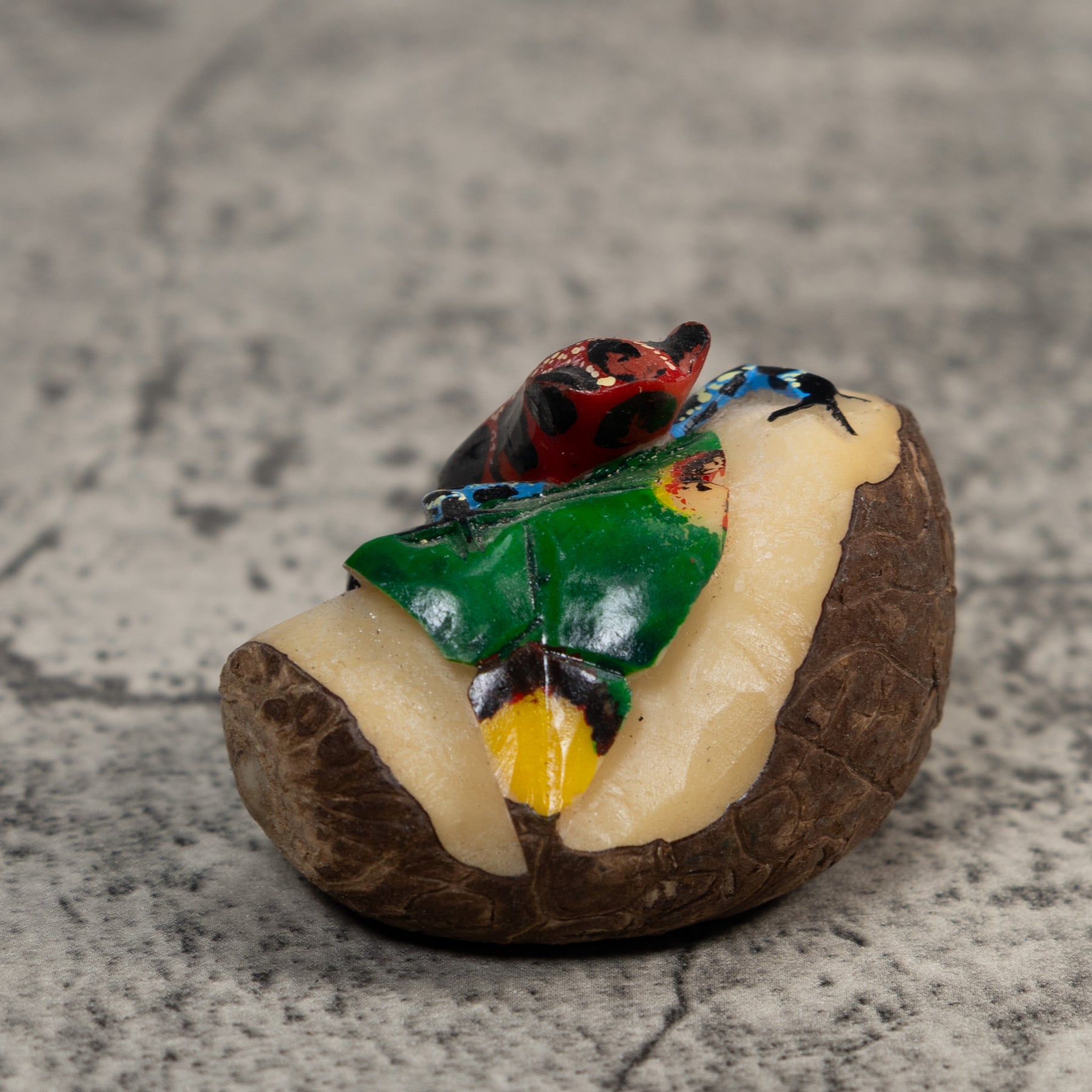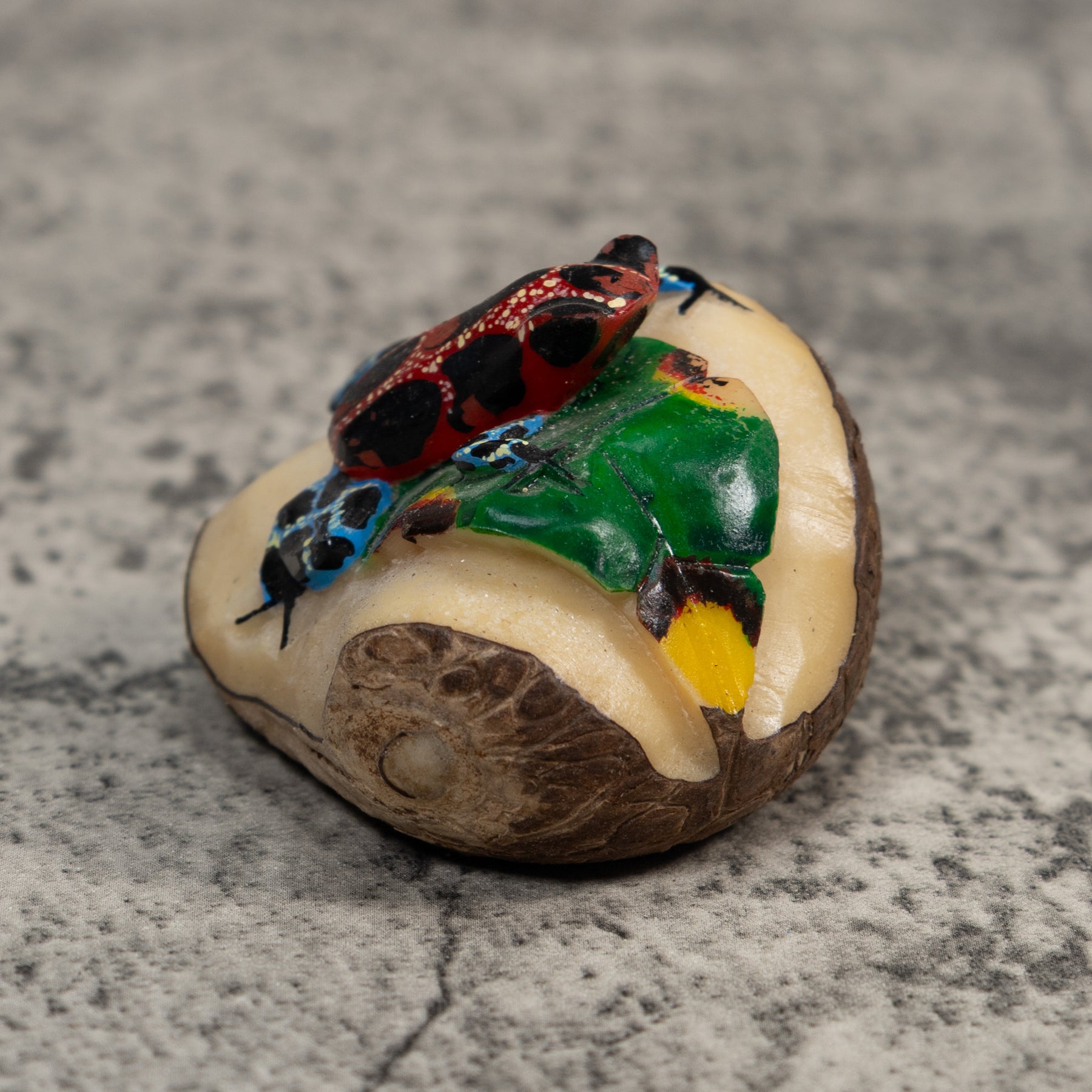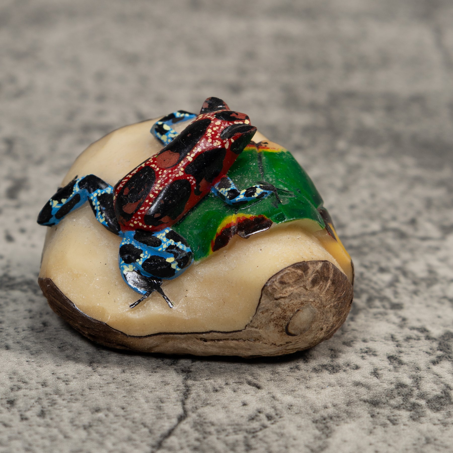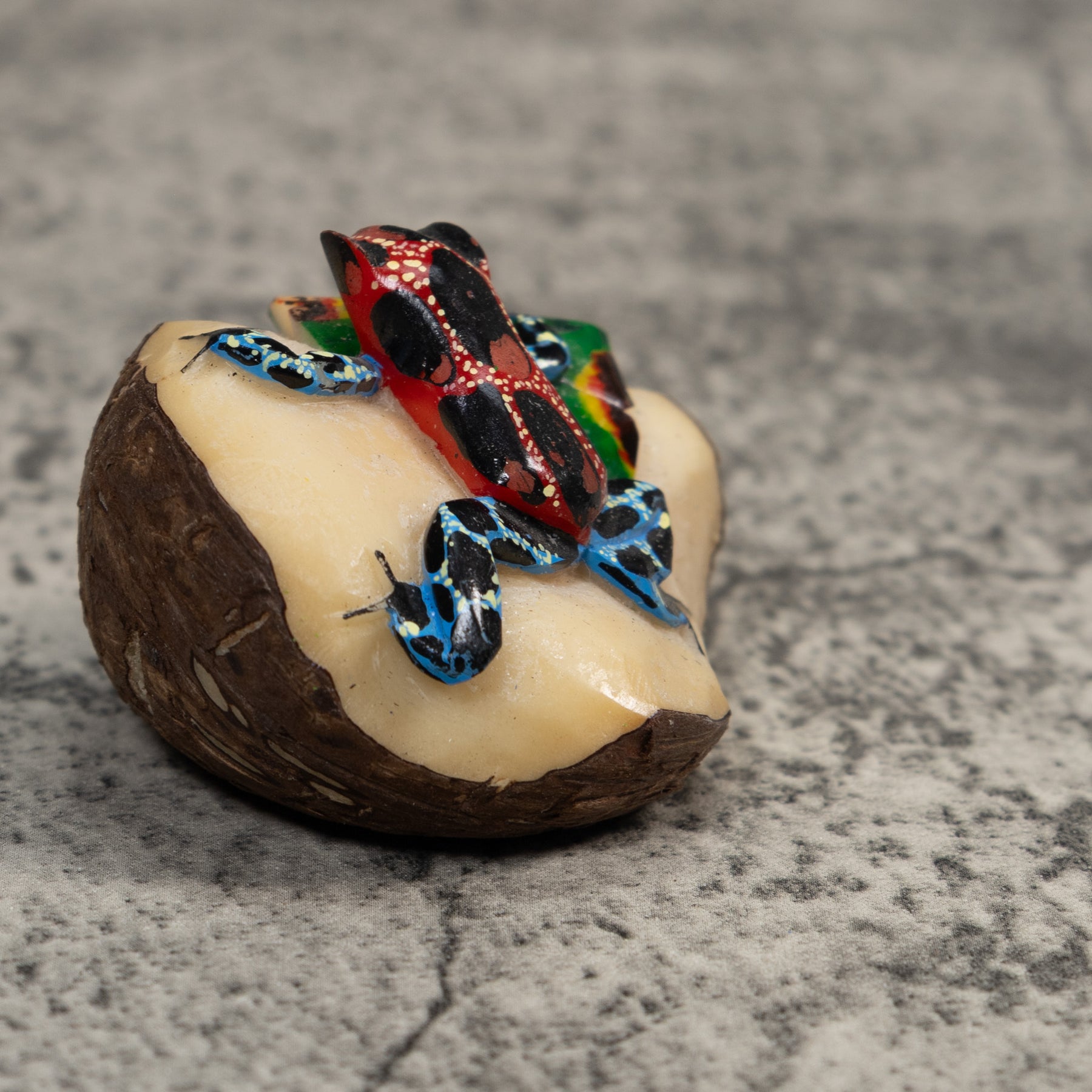 Blue Red And Black Poison Dart Frog Tagua Carving