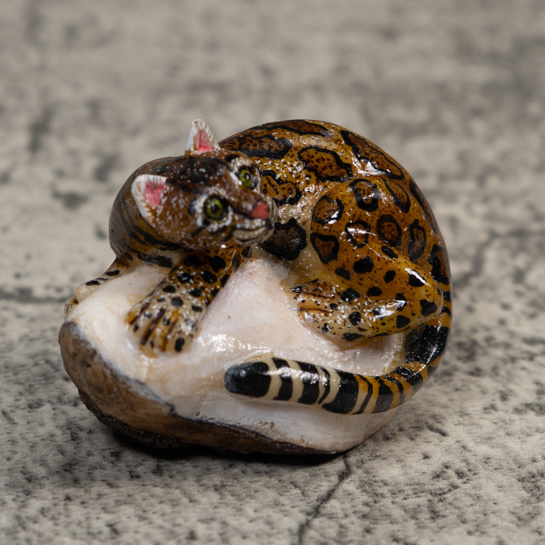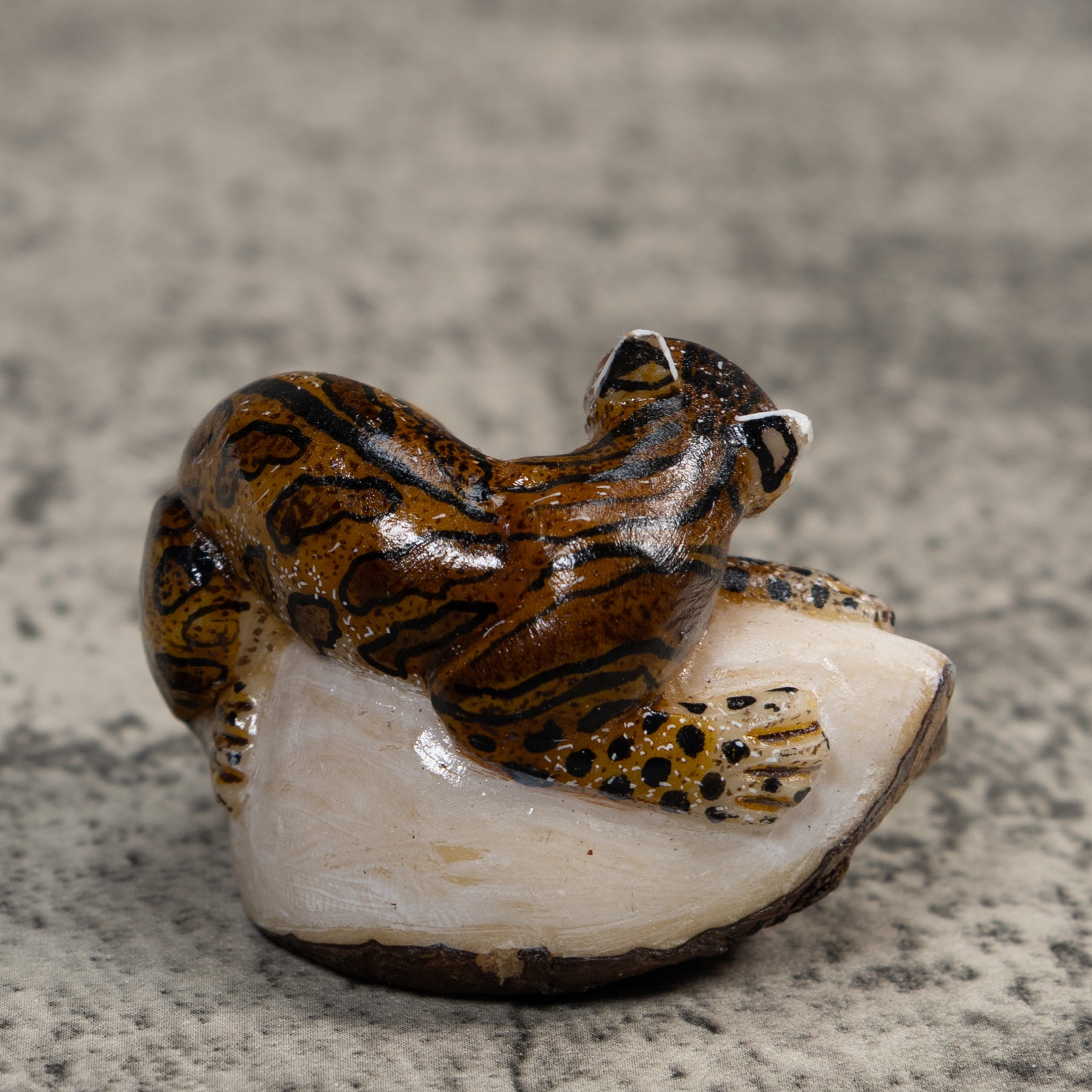 Hand carved from sustainably harvested tagua nut, often called “vegetable ivory”, this charming Jaguar Cat celebrates the rich biodiversity of the Latin American rainforest. Each small sculpture is created by skilled artisans in Panama who carefully shape and polish the natural nut before bringing the animal to life with detailed hand painting. Every piece is made by our artisan partners for TraderBrock, helping support traditional craft and fair, long term relationships with local makers.