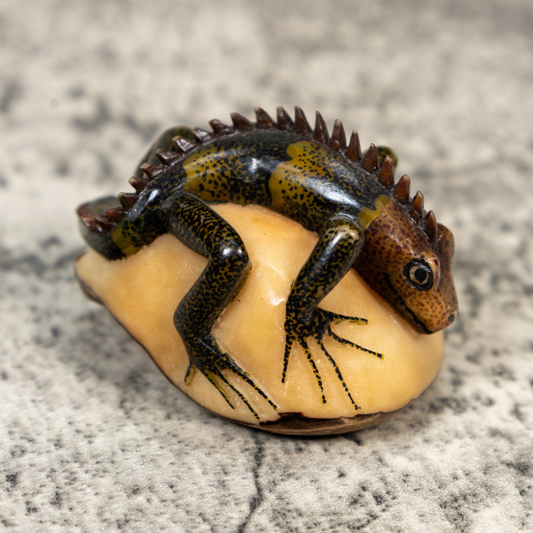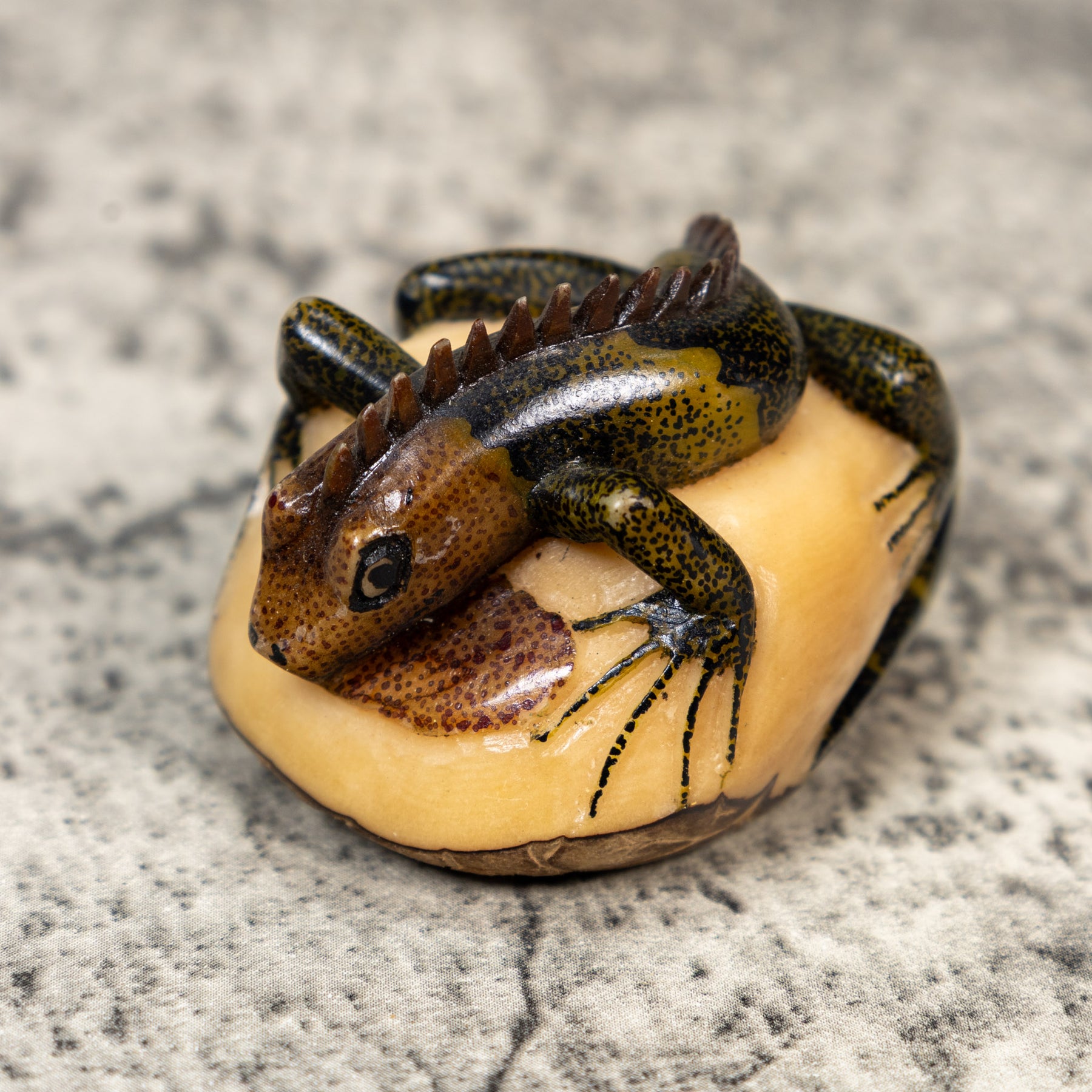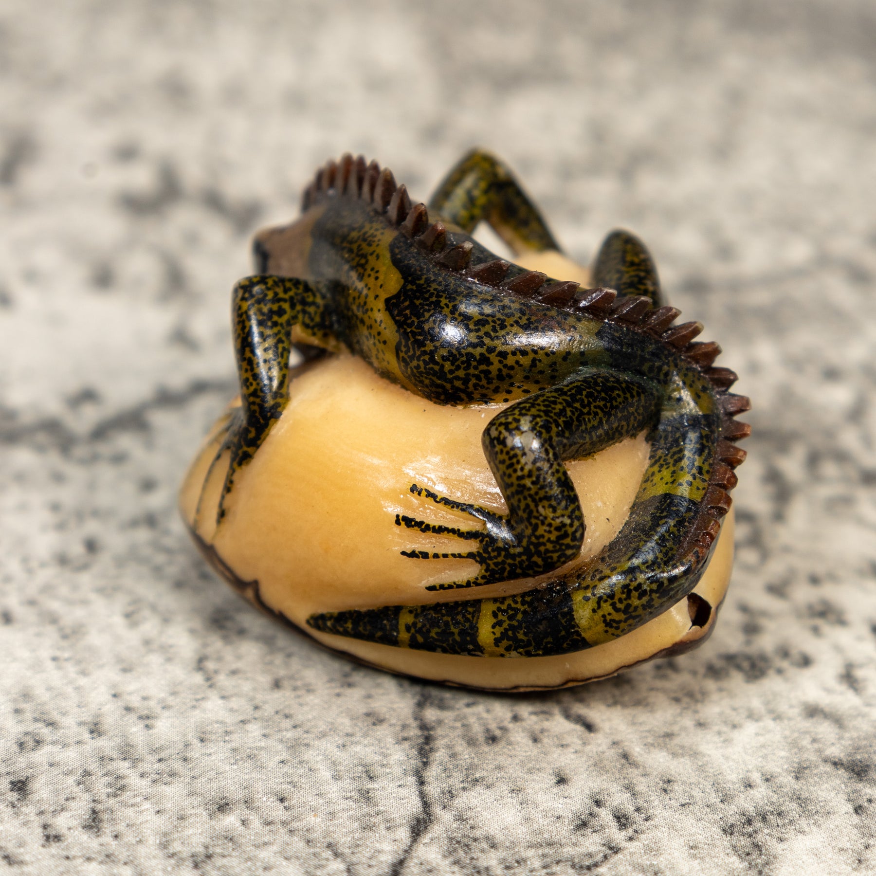 Hand carved from sustainably harvested tagua nut, often called “vegetable ivory”, this charming Iguana celebrates the rich biodiversity of the Latin American rainforest. Each small sculpture is created by skilled artisans in Panama who carefully shape and polish the natural nut before bringing the animal to life with detailed hand painting. Every piece is made by our artisan partners for TraderBrock, helping support traditional craft and fair, long term relationships with local makers.