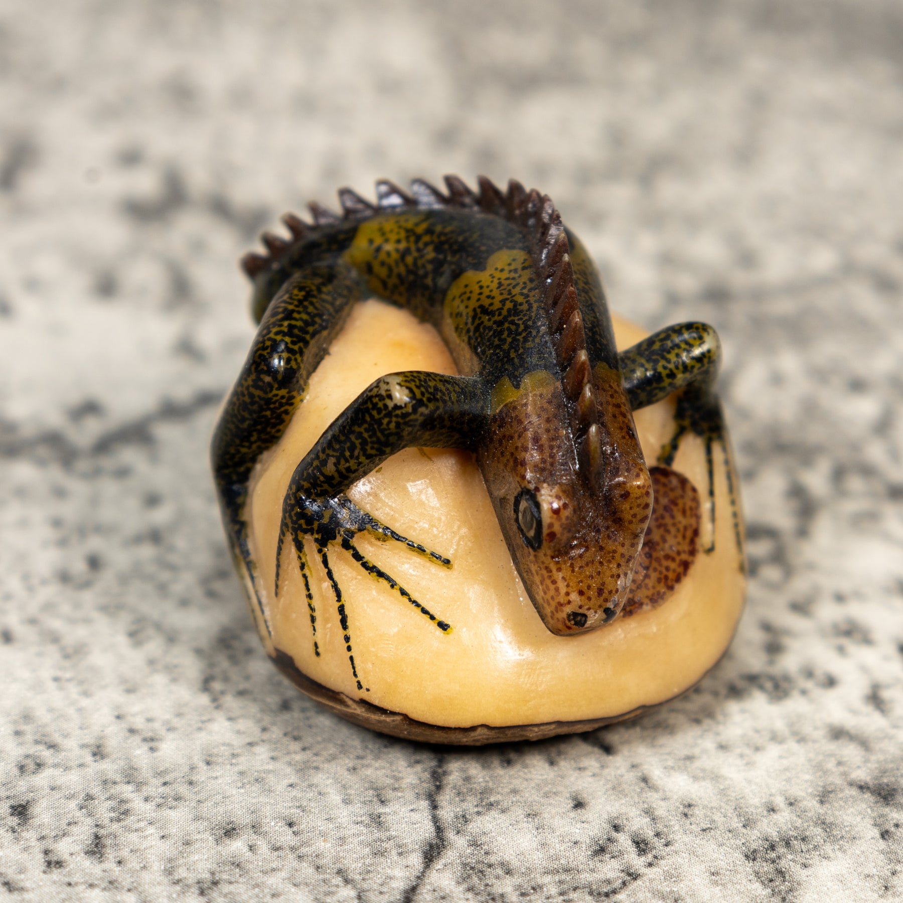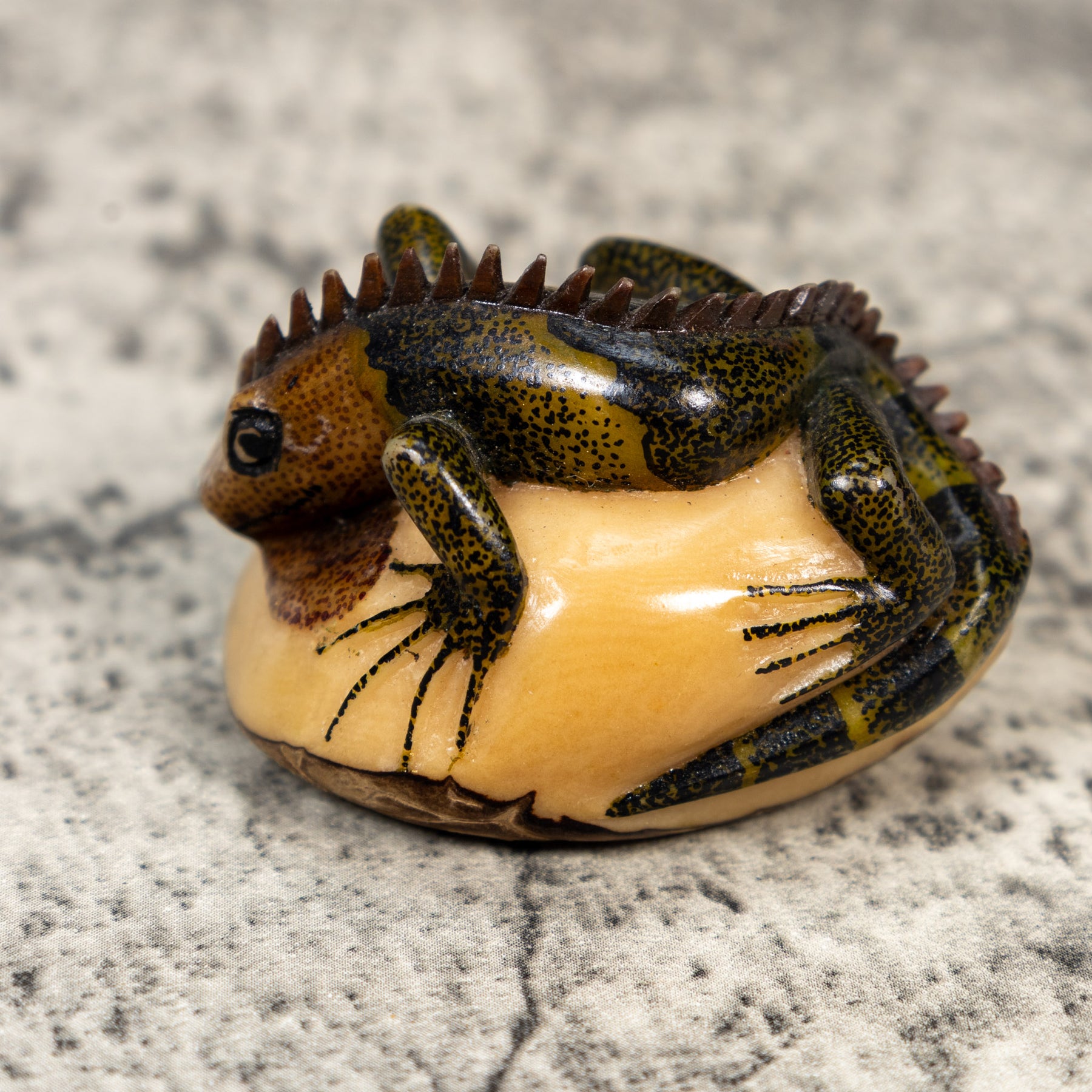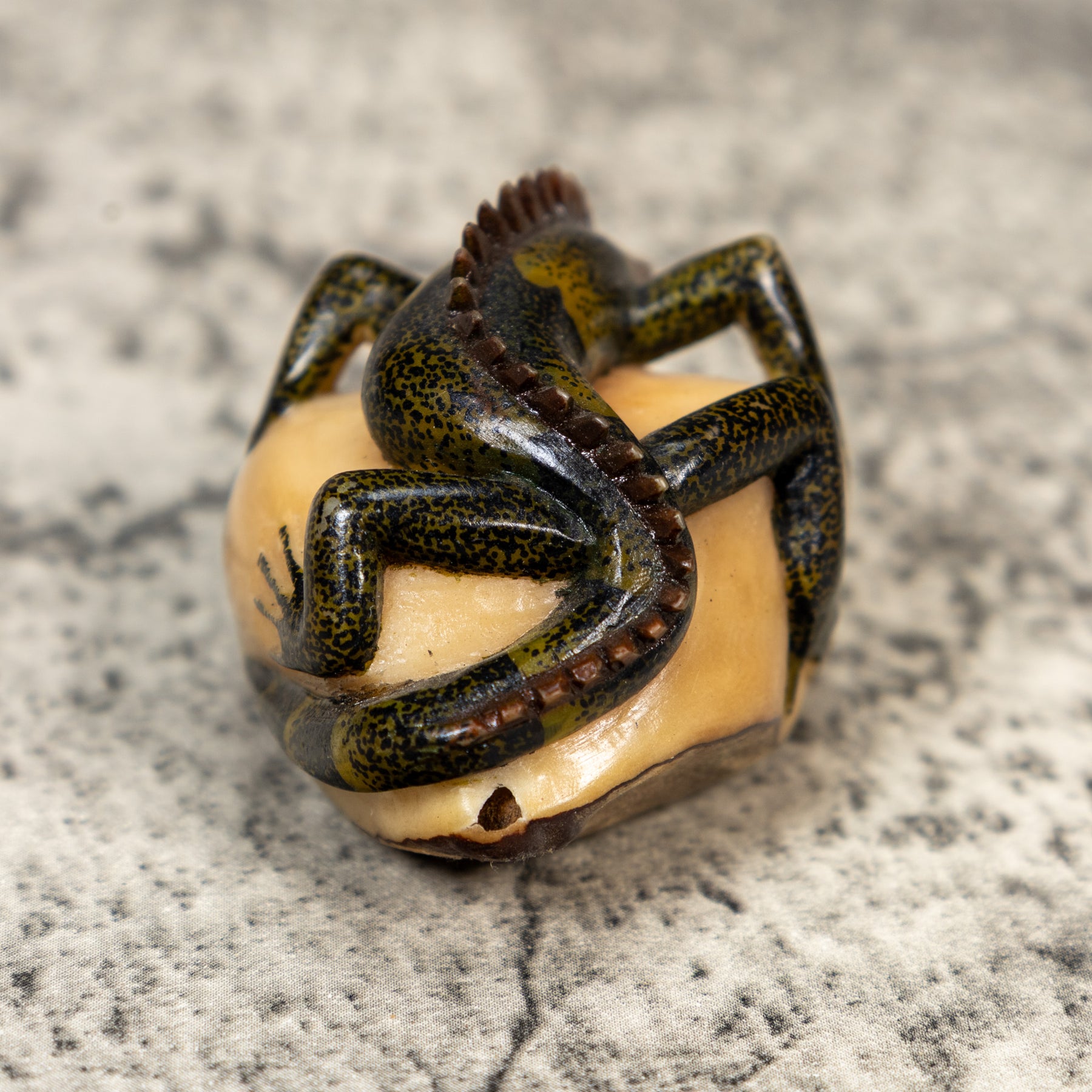 Hand carved from sustainably harvested tagua nut, often called “vegetable ivory”, this charming Iguana celebrates the rich biodiversity of the Latin American rainforest. Each small sculpture is created by skilled artisans in Panama who carefully shape and polish the natural nut before bringing the animal to life with detailed hand painting. Every piece is made by our artisan partners for TraderBrock, helping support traditional craft and fair, long term relationships with local makers.