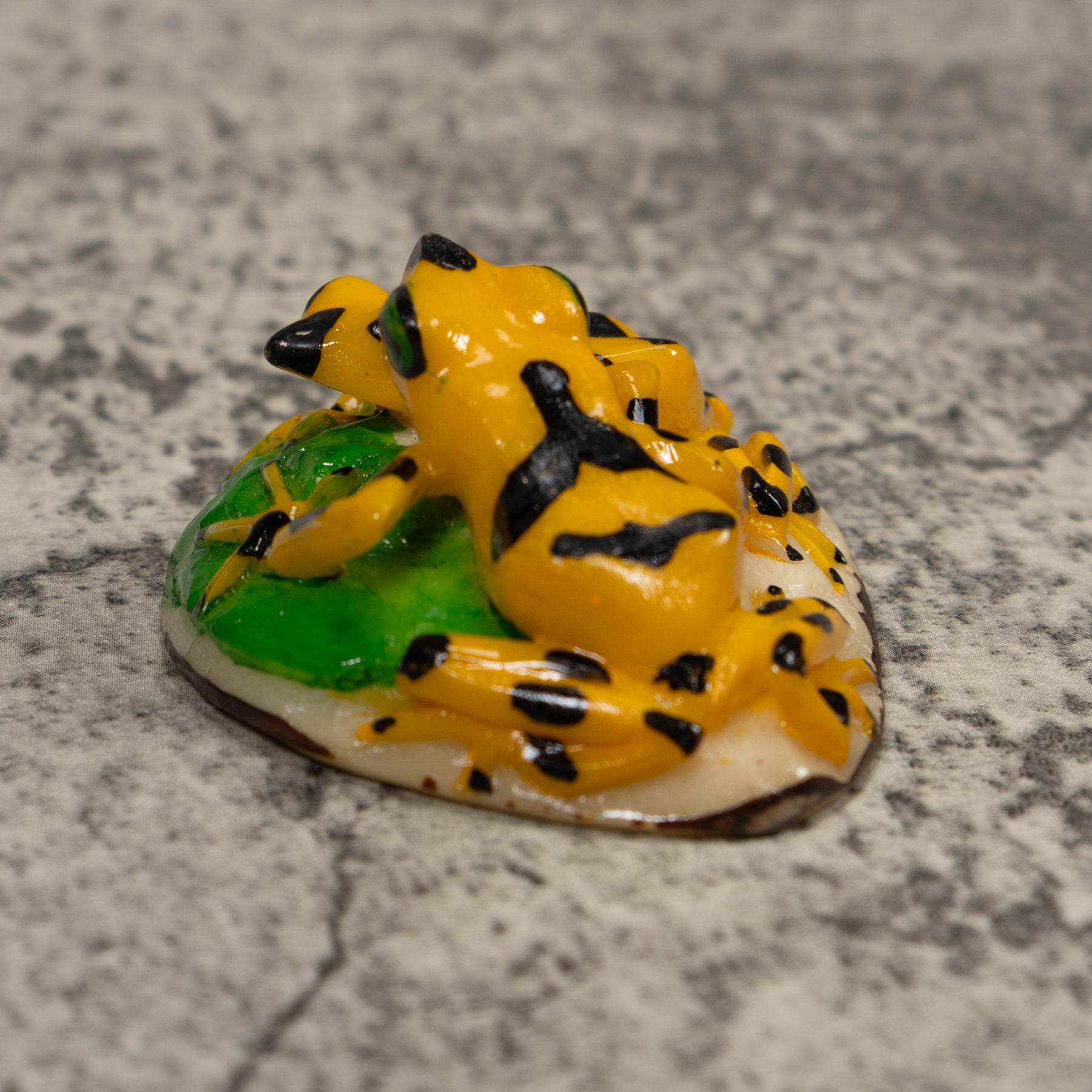 Hand carved from sustainably harvested tagua nut, often called “vegetable ivory”, this charming Double Golden Frog Carving celebrates the rich biodiversity of the Latin American rainforest. Each small sculpture is created by skilled artisans in Panama who carefully shape and polish the natural nut before bringing the animal to life with detailed hand painting. Every piece is made by our artisan partners for TraderBrock, helping support traditional craft and fair, long term relationships with local makers.