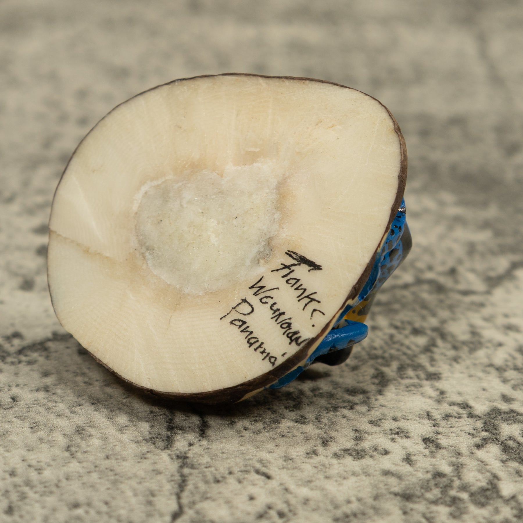 Hand carved from sustainably harvested tagua nut, often called “vegetable ivory”, this charming Double Poison Dart Frog Tagua Carving celebrates the rich biodiversity of the Latin American rainforest. Each small sculpture is created by skilled artisans in Panama who carefully shape and polish the natural nut before bringing the animal to life with detailed hand painting. Every piece is made by our artisan partners for TraderBrock, helping support traditional craft and fair, long term relationships with local makers.