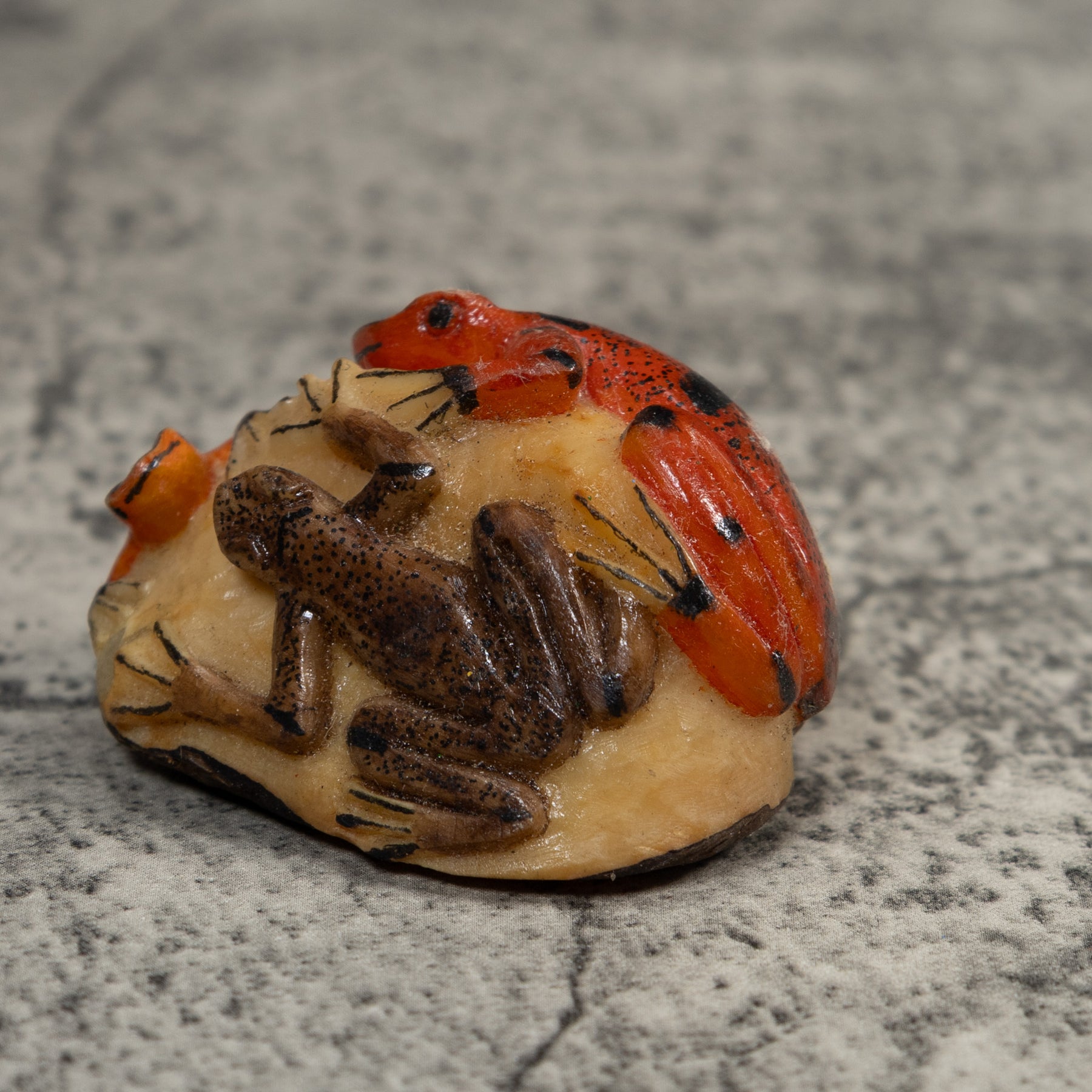 Double Red And Black Poison Dart Frog Tagua Carving