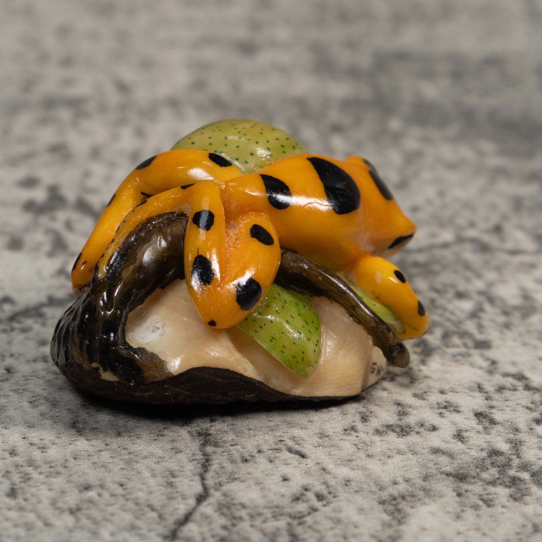 Gold Black And Green Poison Dart Frog Tagua Carving