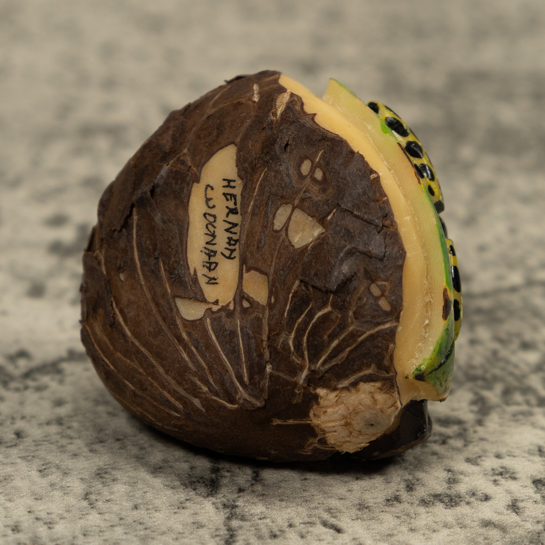 • Hand carved tagua nut “vegetable ivory” from the rainforest