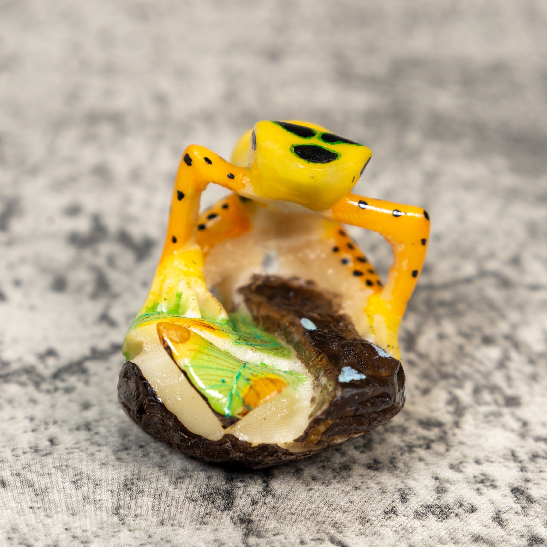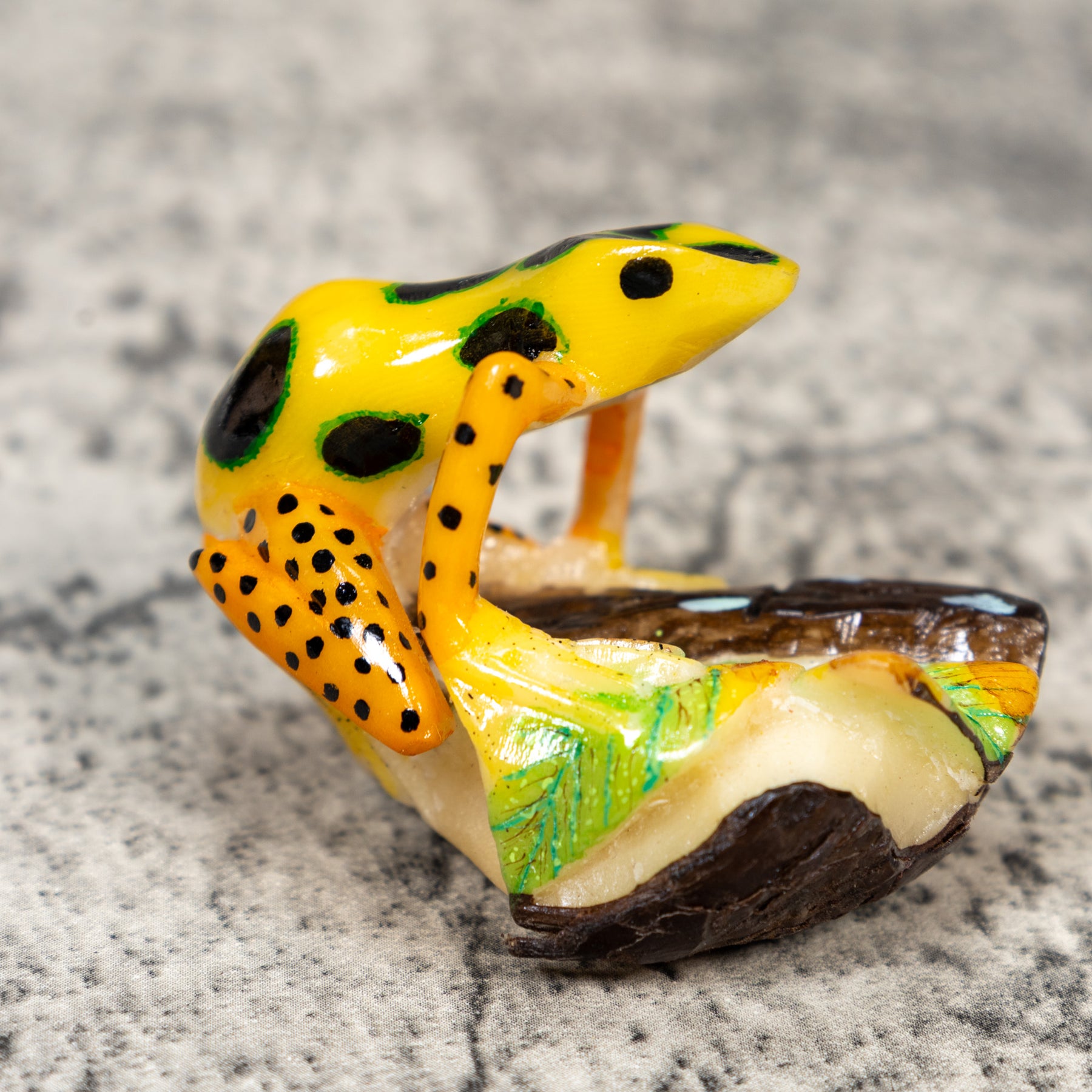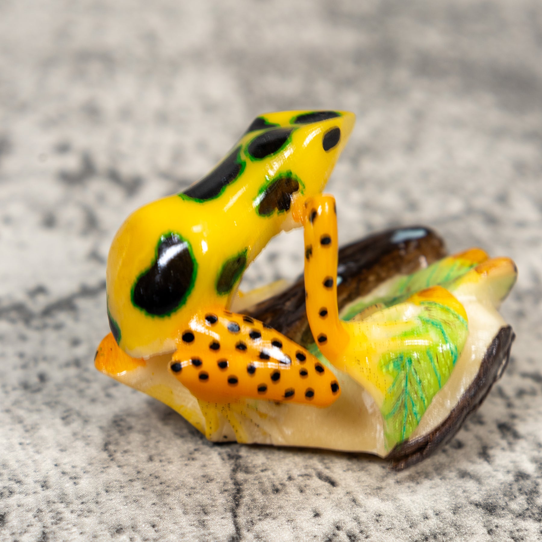 Gold Yellow And Black Poison Dart Frog Tagua Carving