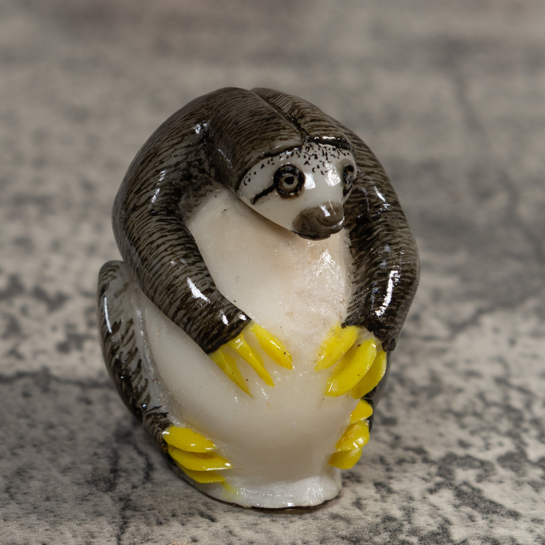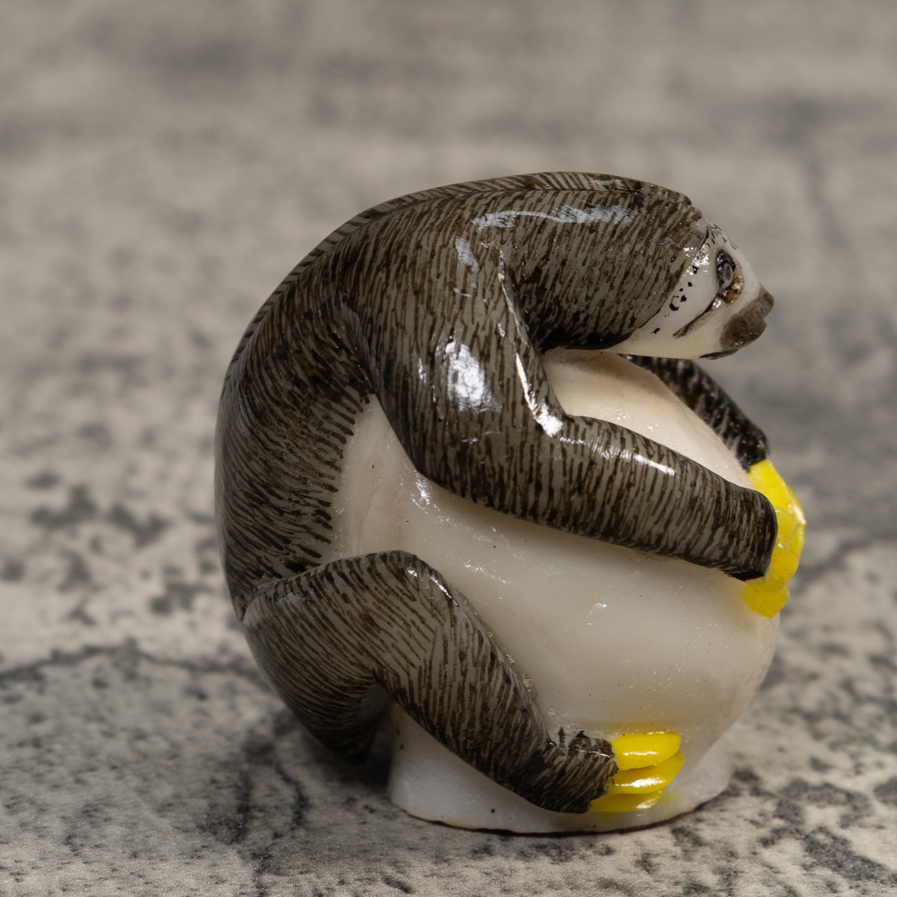 Gray And Yellow Sloth Tagua Carving