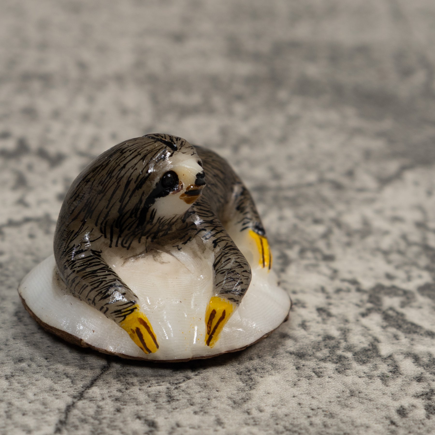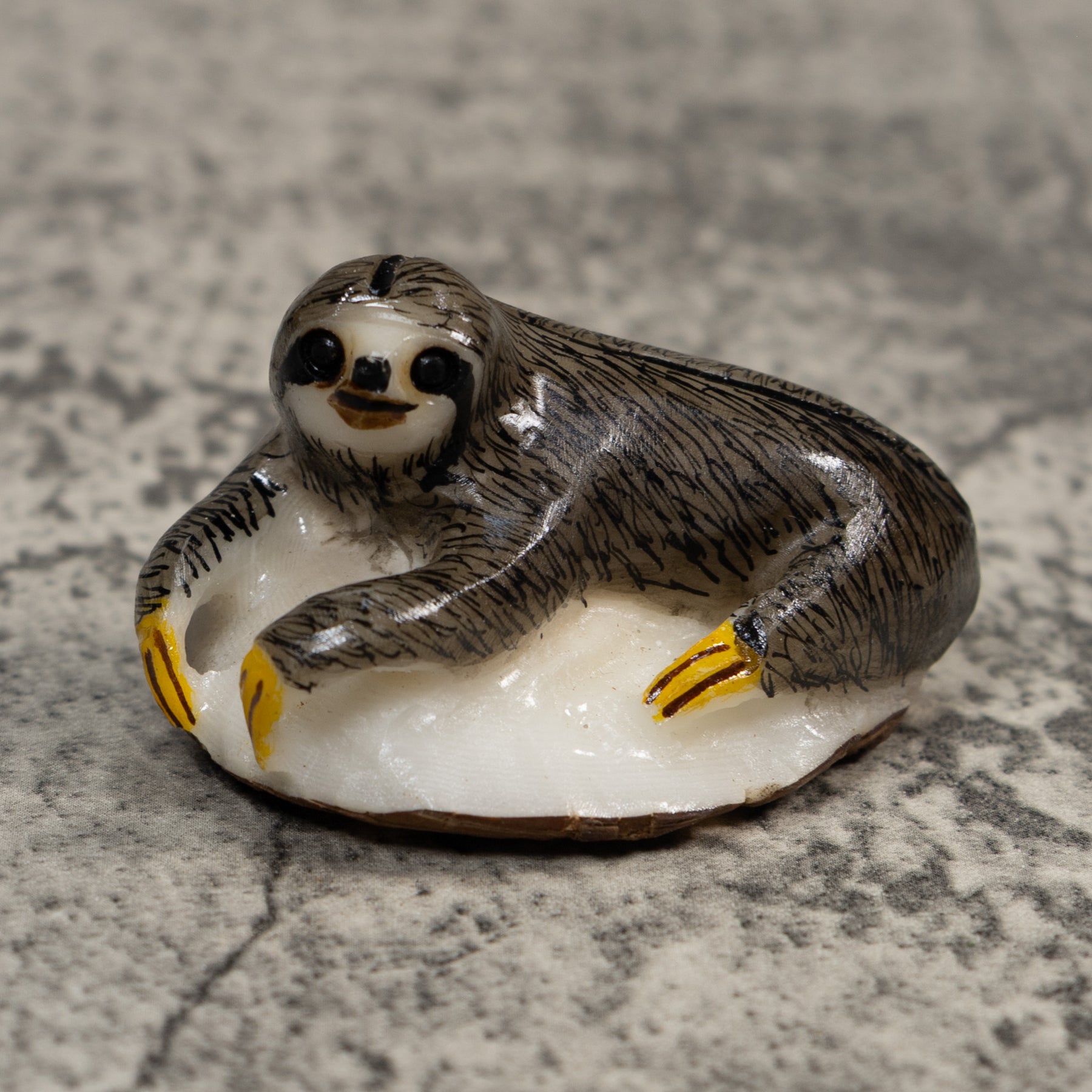 Gray And Yellow Sloth Tagua Carving